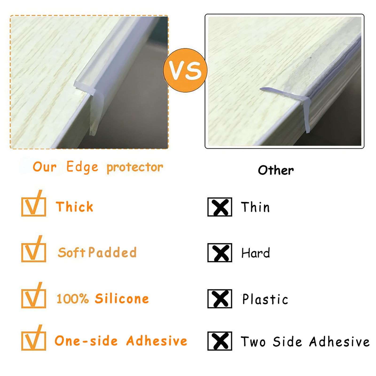 【100% Silicone Material】Unlike hard and thin plastic, our edge protector is made of thick and natural silicone, providing more softness and health to children. It will give 5x more protection than plastic ones.