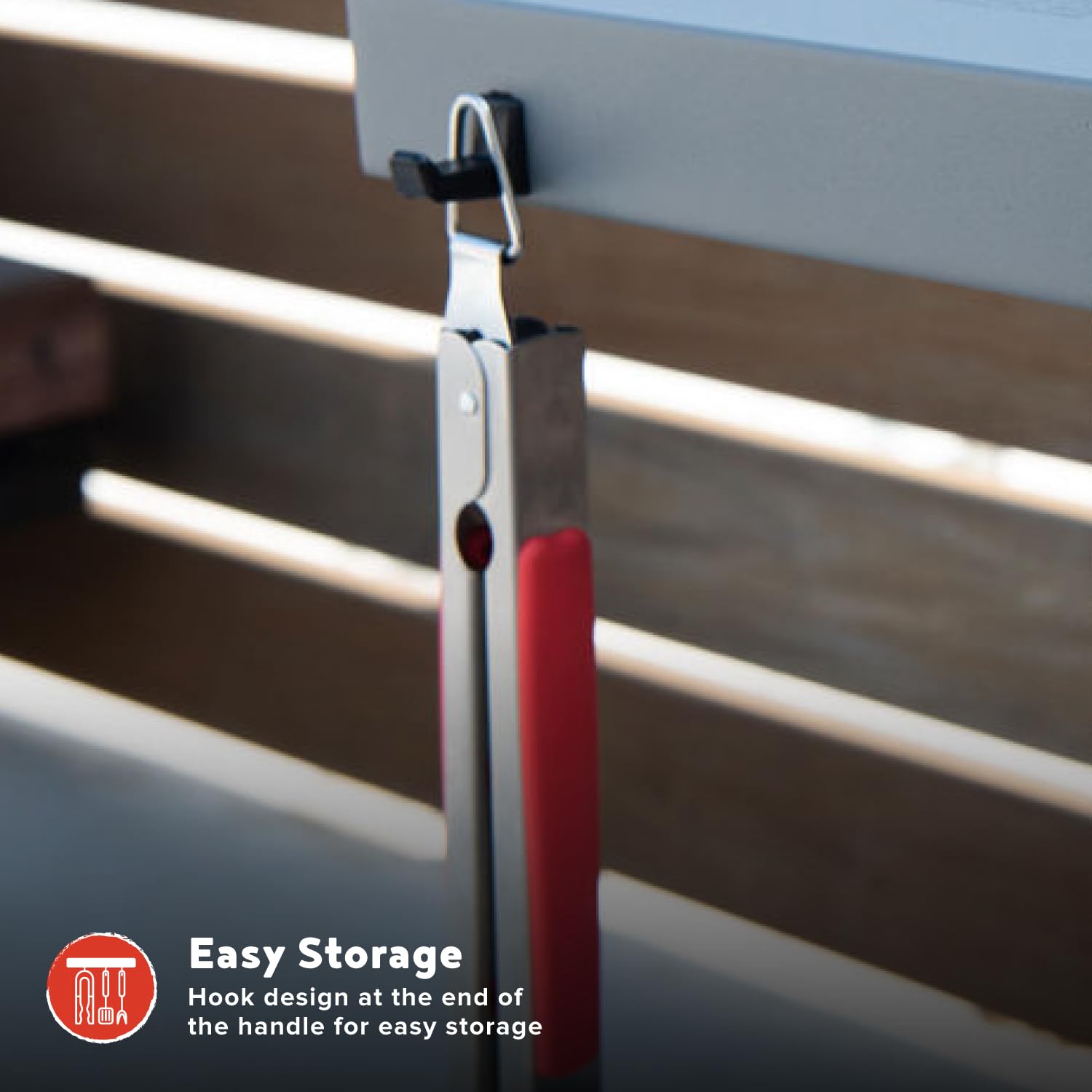 Convenient Hanging Hook – Built-in hook lets you hang cooking tongs on grill or kitchen racks for easy access and space-saving storage.