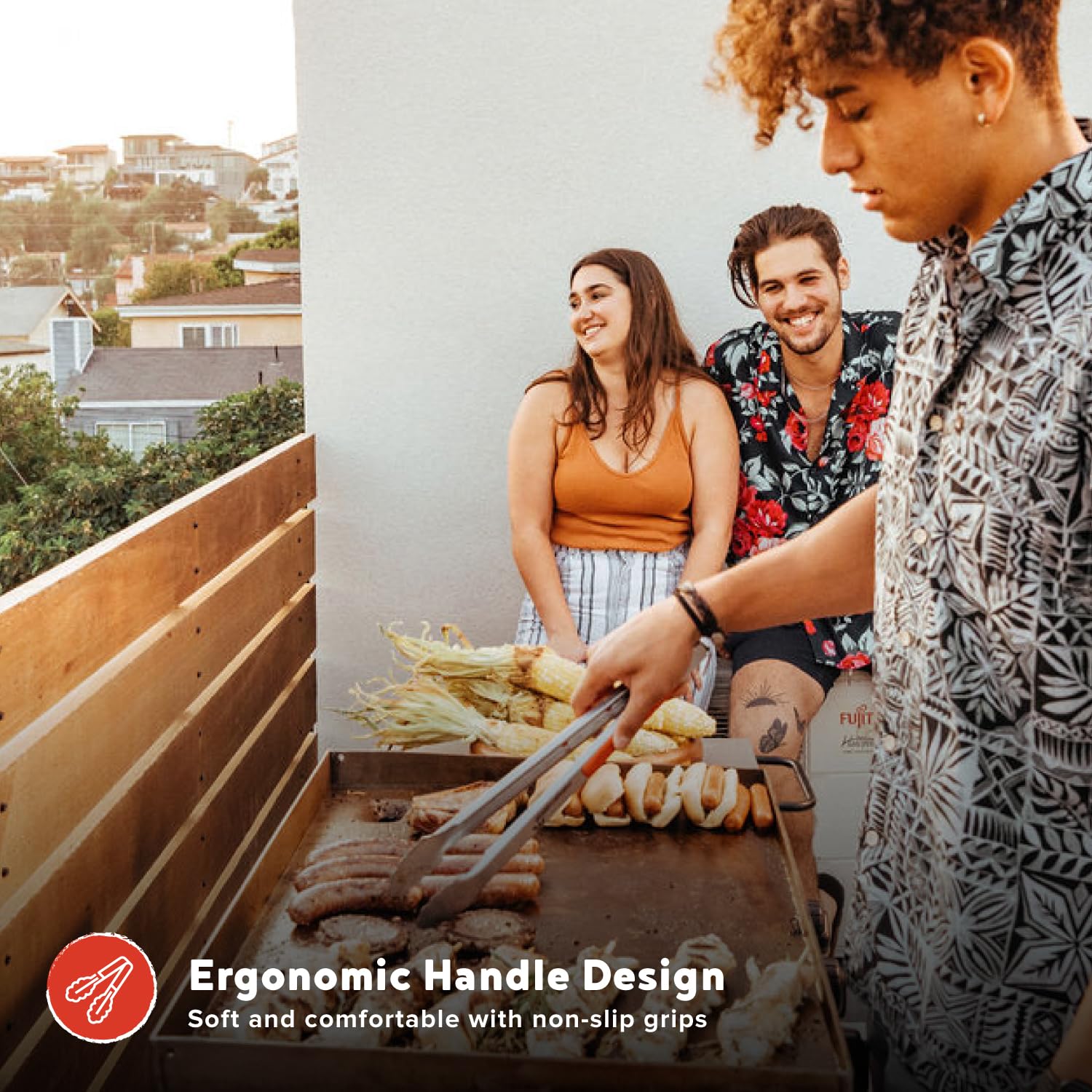 Enhanced Grip and Locking Mechanism – Easy-to-use locking mechanism and comfortable grip provide control when grilling, flipping, or turning food; lock keeps metal tongs compact for storage.