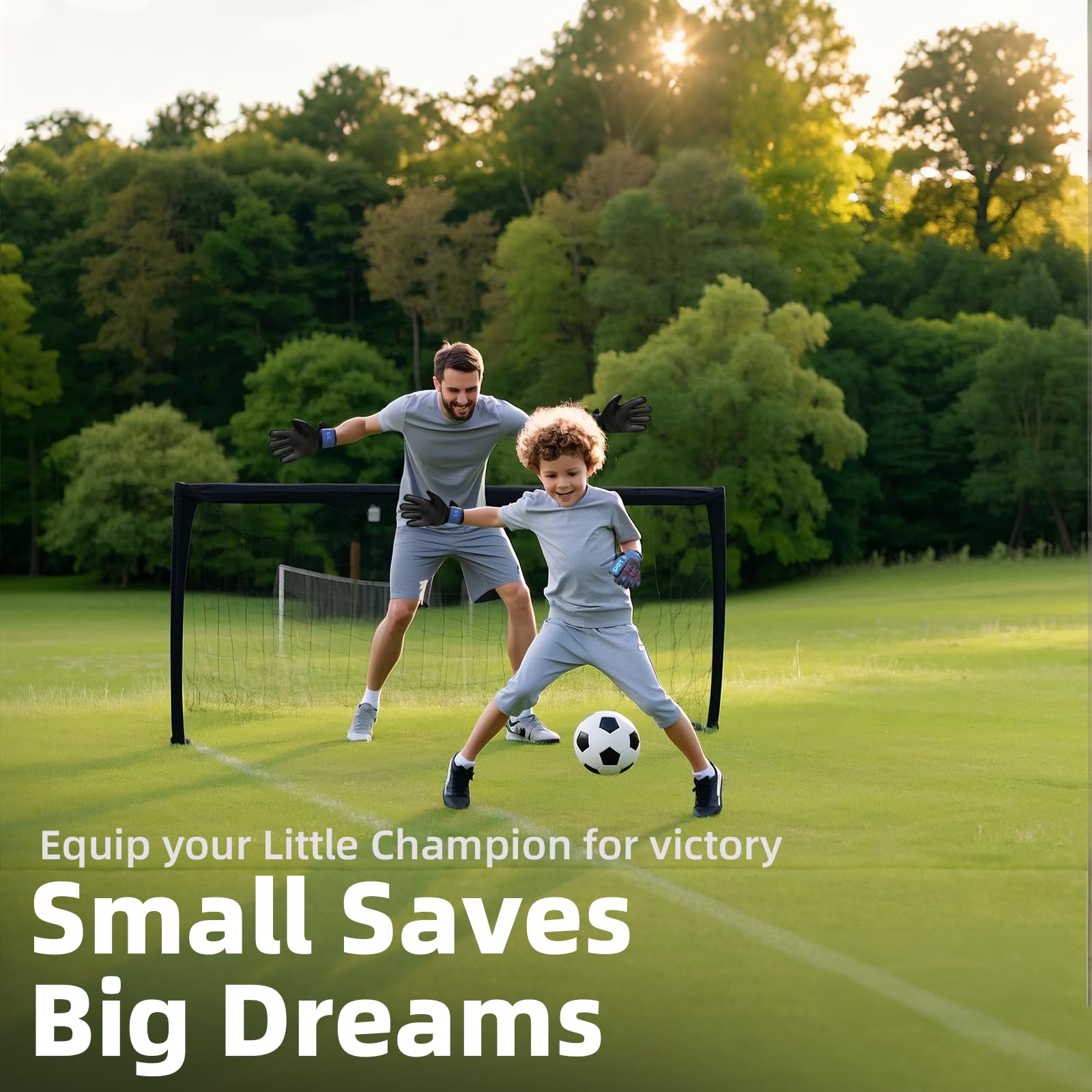 DOUBLE WRIST SAFEGUARD:- With a double-designed wristband (elastic lining and velcro bandage), these soccer gloves secure wrist muscles to reduce sprain risks. The adjustable fit caters to both kids 8-12 and women, ensuring comfortable protection during intense play.