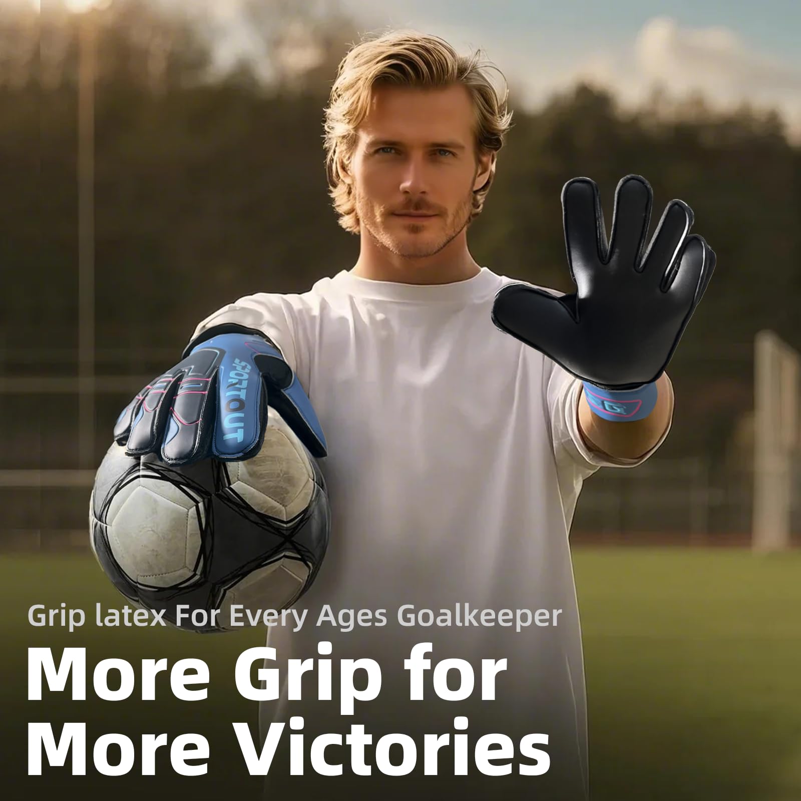FOR THE TOUGHEST SAVES:- These goalkeeper gloves feature wear-resistant latex palms for extreme control and grip, ideal for goalies of all levels—including kids 8-12 and women seeking reliable performance. The unique positive cut design enhances ball contact, enabling the toughest saves in play for both young athletes and female players.