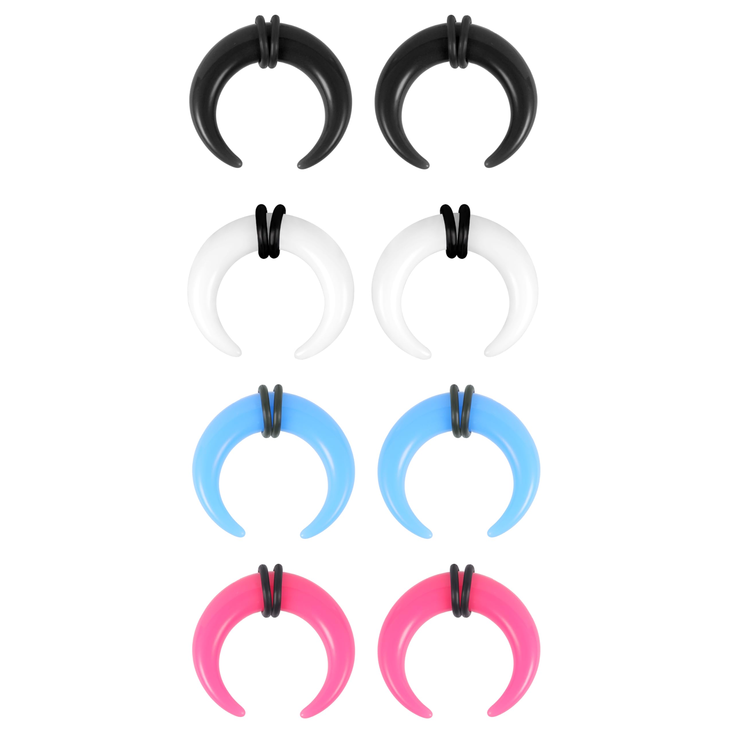 ❀Septum Pincher Tapers for Women——One order comes with 4 pairs horseshoe piercing tappers. (Pair of blue acrylic pincher tapers, pair of white acrylic horseshoe tapers, pair of black acrylic septum piercing jewelry with double O-rings, pair of pink septum ring.) Economical ear plug tunnel tapers that reasonable price deserves to purchase.