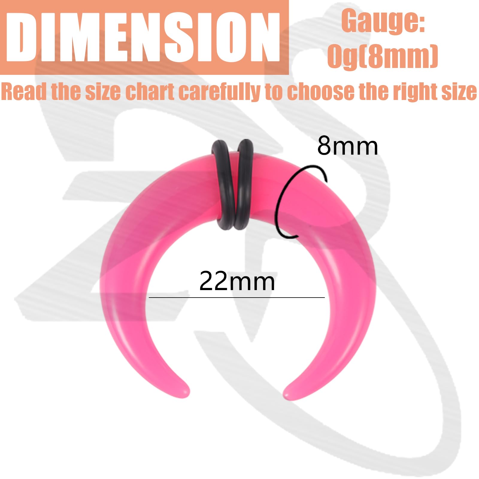 ❀Acrylic Buffalo Tapers Size——Crescent stretching expander rings gauge: 14G, 12G, 10G, 8G, 6G, 4G, 2G, 0G, 00G. C shape earrings taper inner diameter: 11/13/13.5/15/16/18/22/25mm. Stretcher taper kit color: blue, pink, white, black. Wearing cool 14g-00g ear stretching kit makes you more elegant and charming.