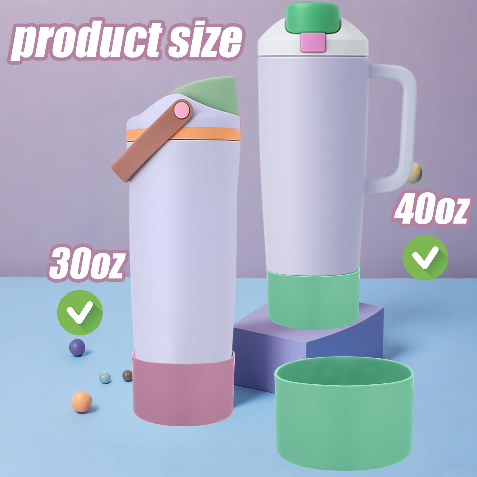 Custom Fit for Owala 30oz & 40oz Bottles: This silicone boot is tailored to fit for owala free sip sway 30oz and 40oz tumbler bottles perfectly, enhancing stability and protection while preserving the bottle’s sleek, original design