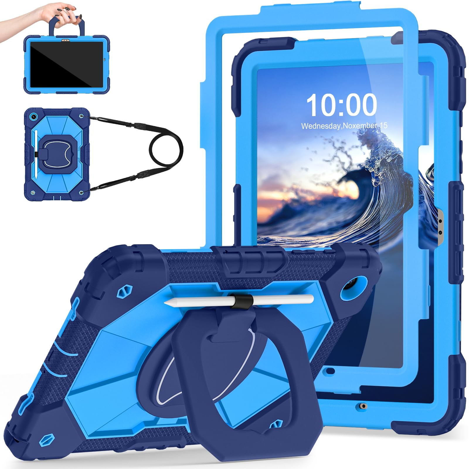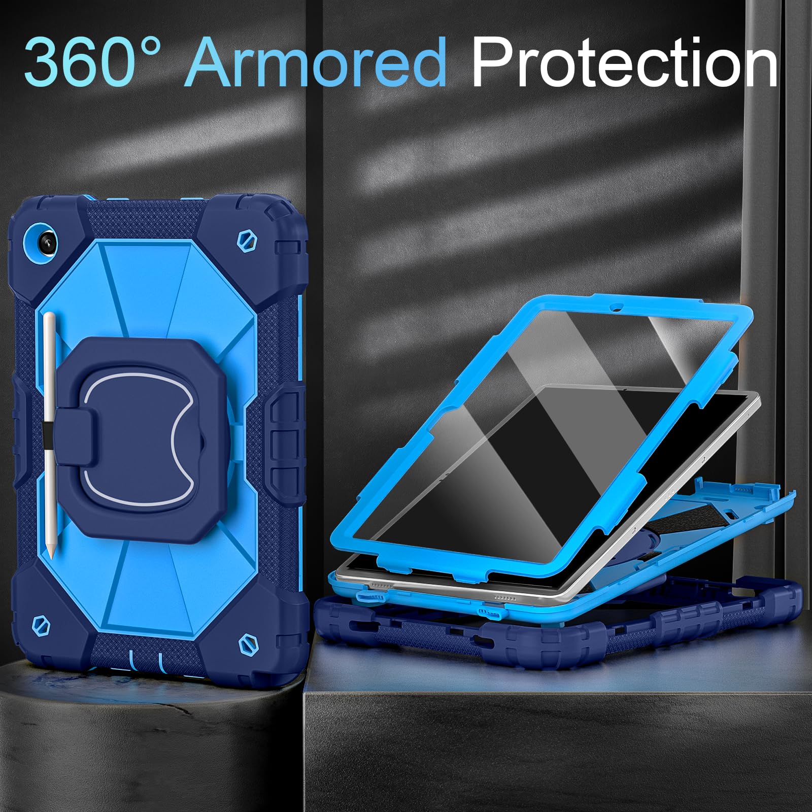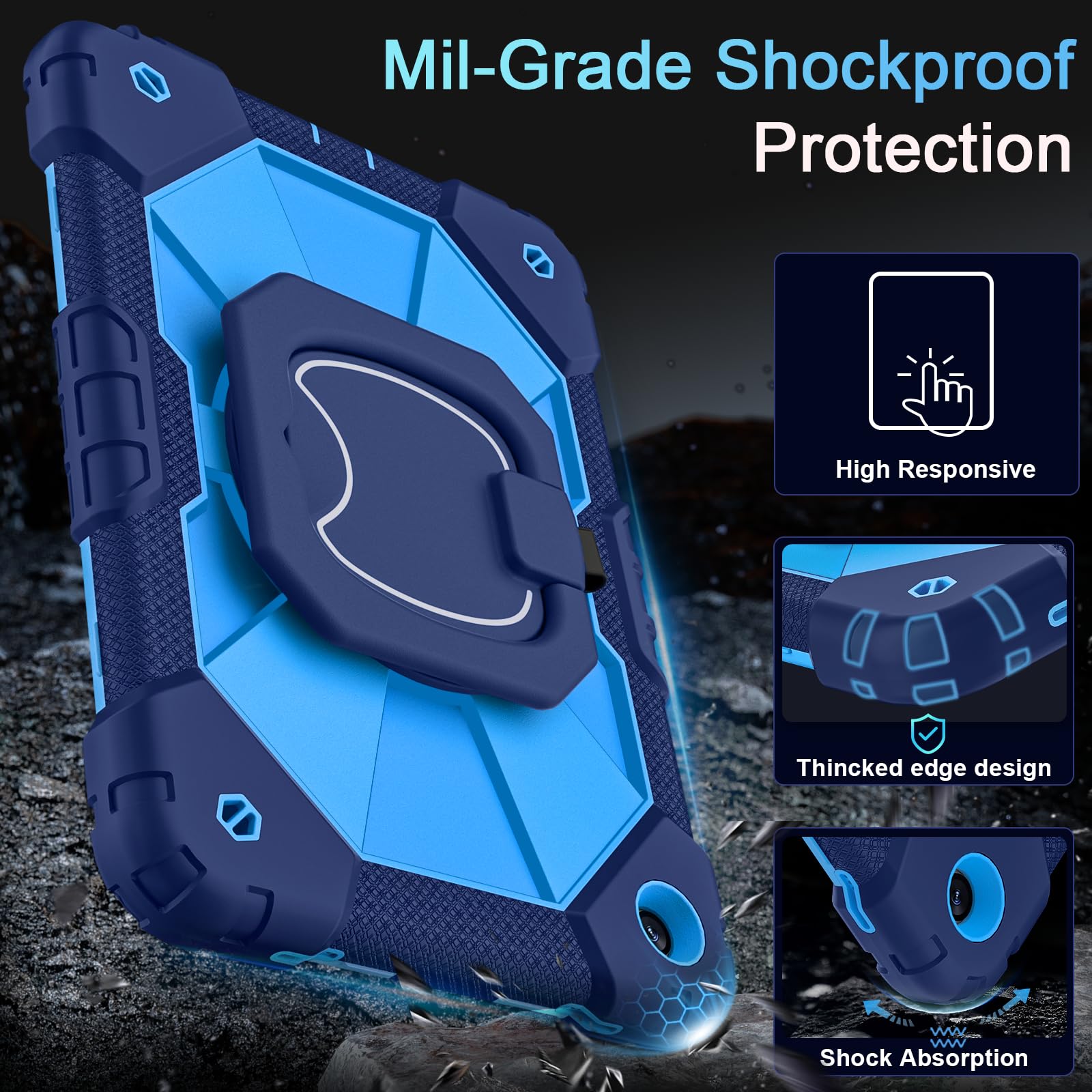 【PREMIUM PROTECTION】This samsung galaxy tab a9+ case is made of shockproof PC & soft silicone(with built-in screen protector),so nice to touch,provides a better grip.Unique shock-proof design keeps your tablet better protected to avoid daily bumps,scrapes,defeat 99% accidental drops,unbreakable!
