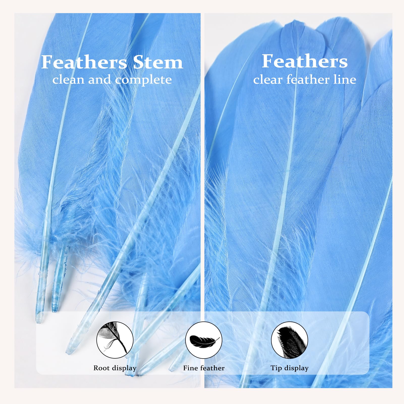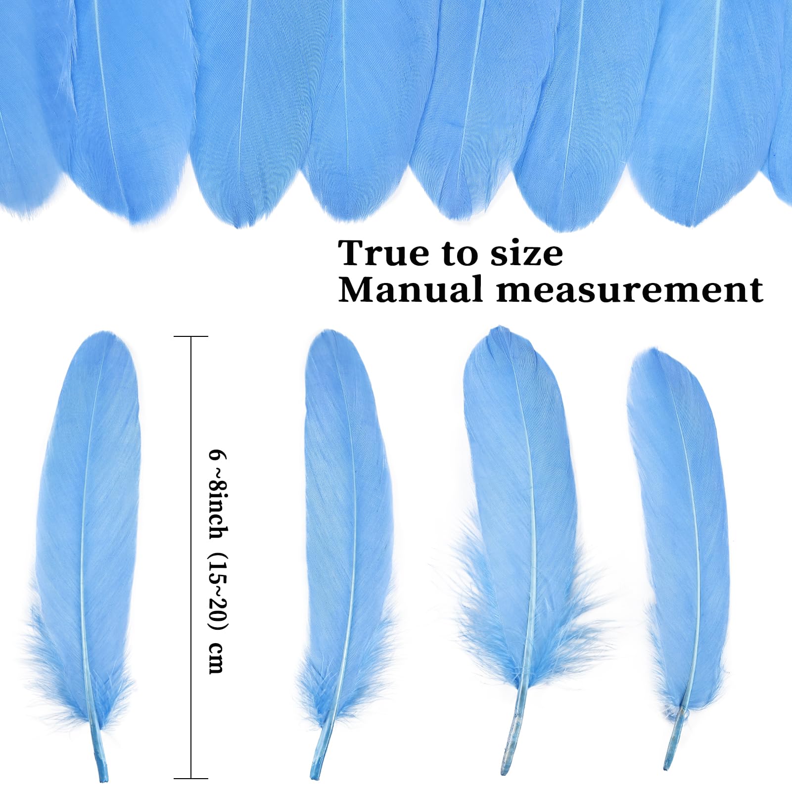 Product Specifications:length:6-8inch,15-20cm long.120pcs/bag.Sufficient quantities to satisfy all your sky blue feathers fantasies! Because all feathers are purely natural, there may be slight deviations in size, length, and shape