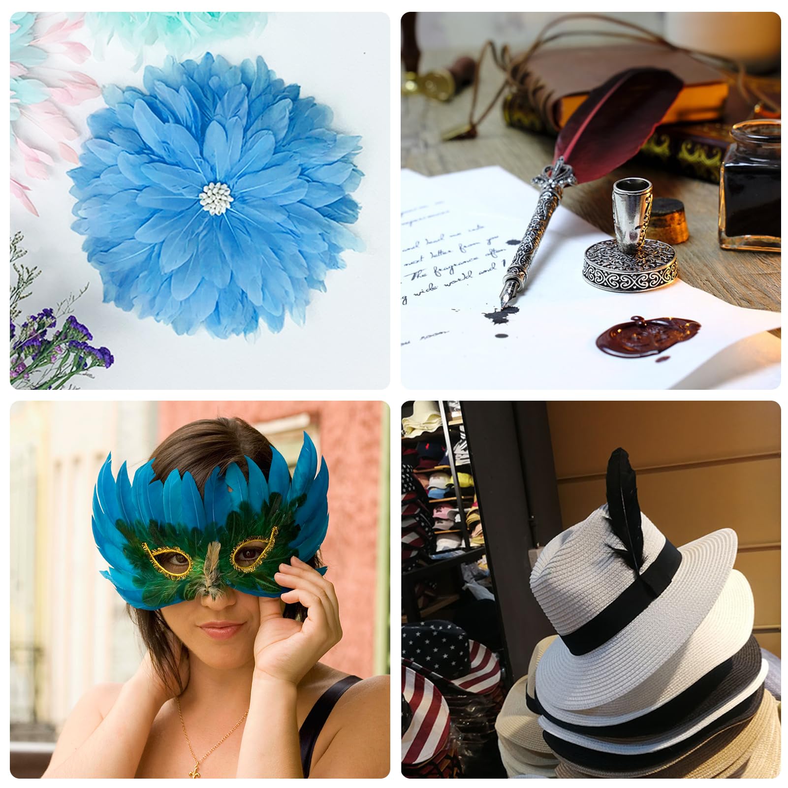 Applications: Bulk Goose Feathers are perfect for wedding centerpieces, thanksgiving crafts, feather garlands, cake top decor, Gatsby Party, masquerade decor, home decor, holiday decorations etc. Luxurious feathers will make your party more beauty and romantic. if you are a craft lover, goose feathers ideal for various DIY craft projects, earrings, pendants, jewelry making, garments and hats or masks, floral arrangements. Add a fun design to a variety of projects