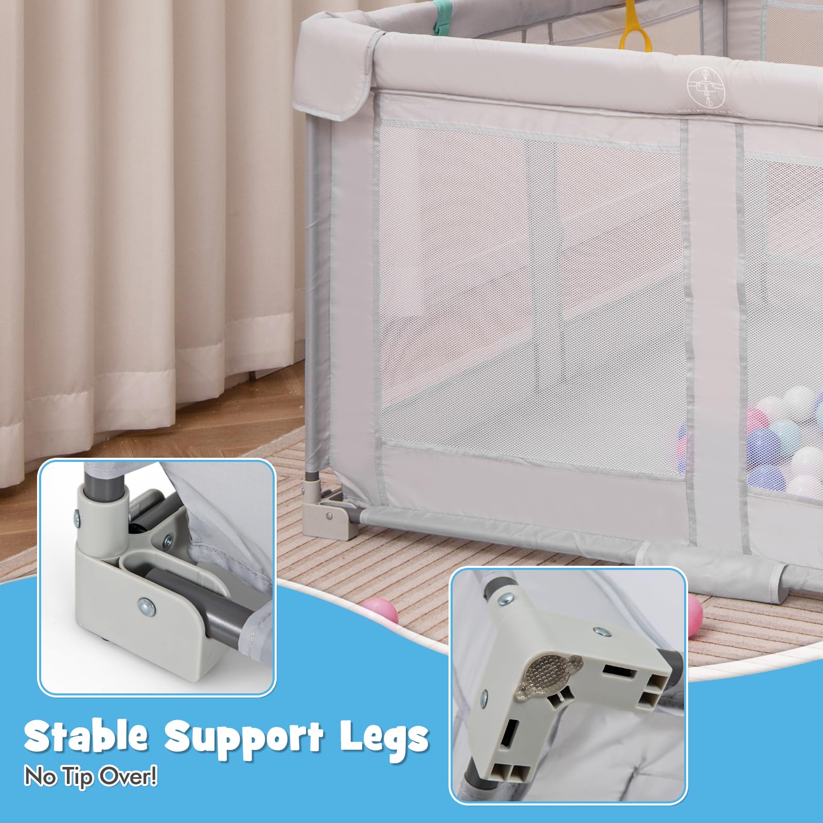SET UP AND FOLD IN SECONDS: Experience hassle-free setup with this no installation required playpen. It comes with one button folding, easy for installation and storage, and 2 fixed straps for added stability. This quick-and-easy fold system means more time playing and less time preparing.