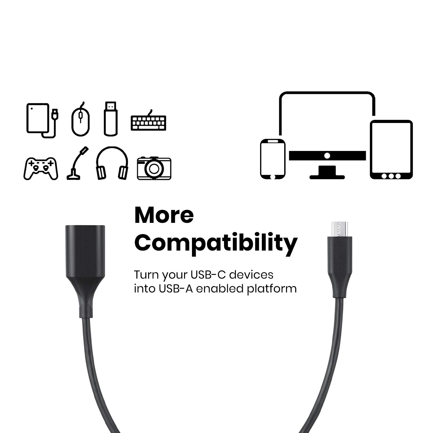 USB-C to USB 2.0 Cable Adapter - Connect standard USB A enabled peripherals and devices (flash drives, USB hub, camera, USB card readers, keyboards, mice, and more) to USB-C enabled devices (Android smartphones, iPad, Android tablets, laptops and desktops) with up to 480 Mbit/s