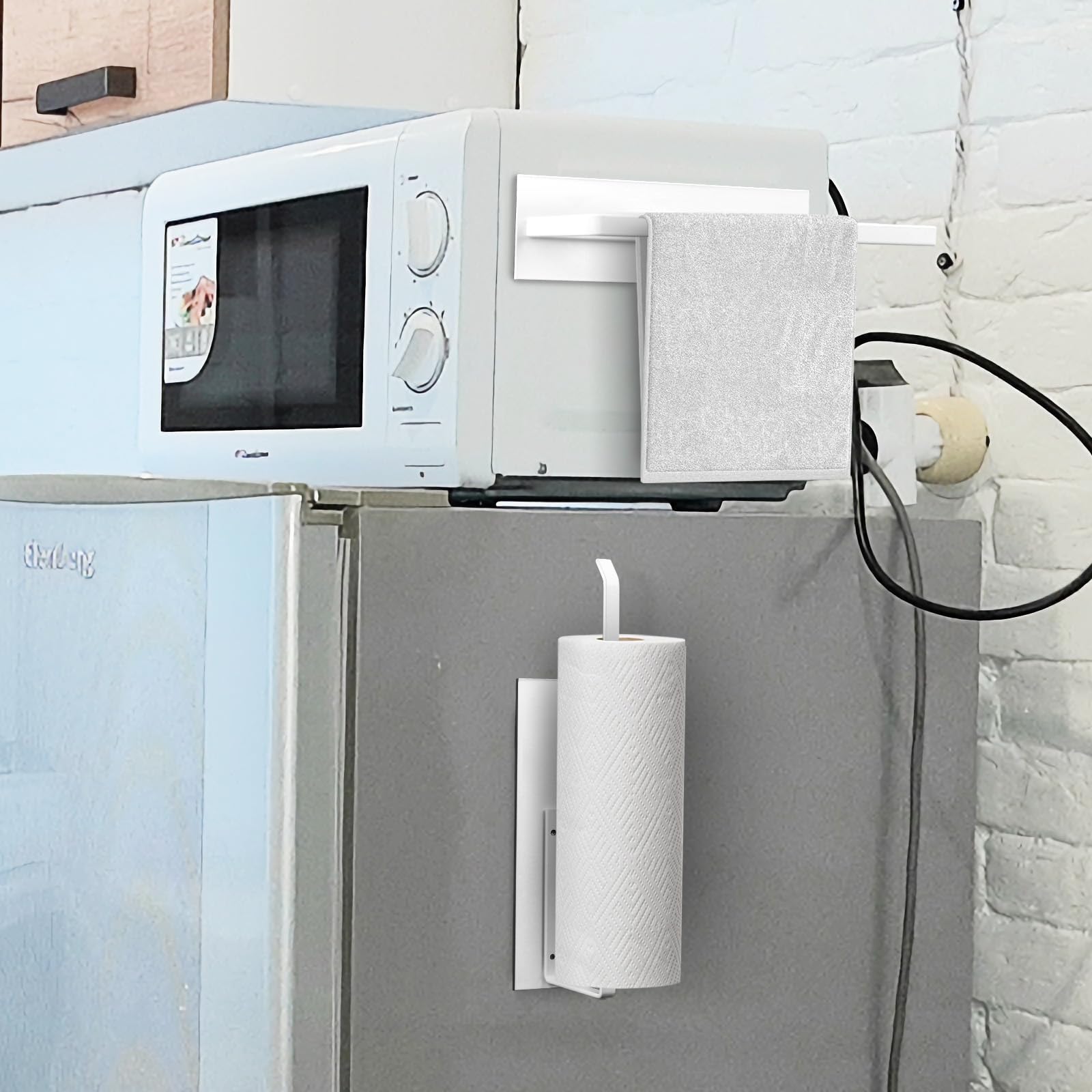 Magnetic Paper Towel Holder White: Unlike paper towel holder under cabinet, adhesive paper towel holder wall mount, or toilet paper holder adhesive, our kitchen towel holder with strong magnetic backing always attaches firmly on metal surfaces and easy to remove for new position without leaving drilling holes or glue residue. The one-piece paper towel bar design will not break like other hand towel holder with weak welding. Perfect pantry organizer rv accessories for garage storage and fridge organizers and storage.