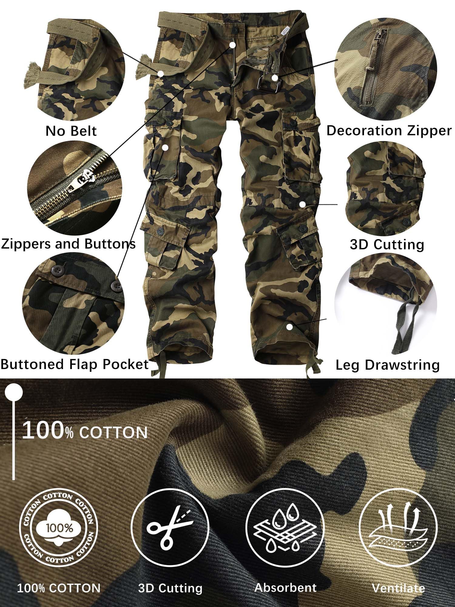 Universal Fit: Multiple Color including enable you to match your occasion and style freely,offers versatile, relaxed fit style.It is suitable for daily outfit or work or outdoor activities like tactical training, travelling, backpacking, camping,hiking, hunting, fishing, paintball, mowing hip-hop dancing. Camouflage style is also match to law enforcement, military combat uniform, style and CS wargame,sturdy & roomy, ripstop pants made mens more charming.