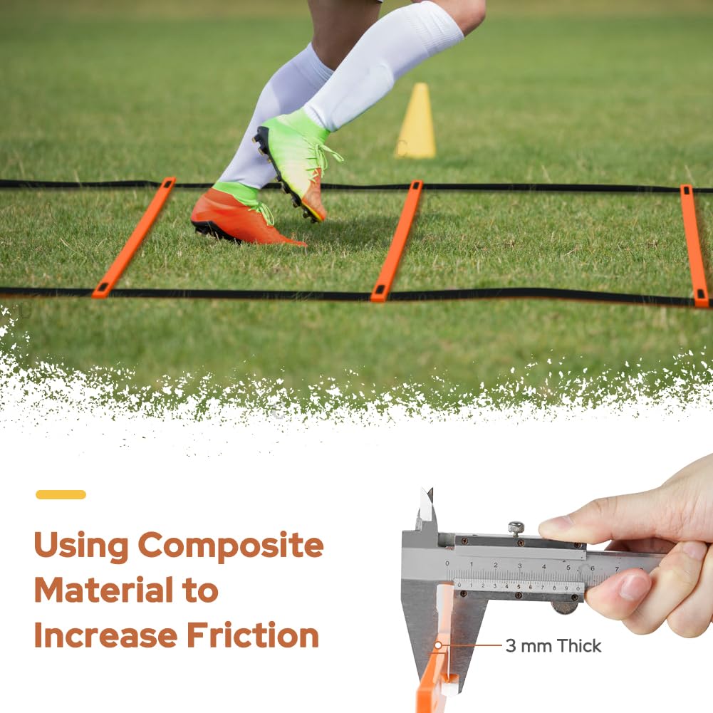 20 Feet 12 Rungs Agility Ladder:The agility ladder comes with 12 sturdy plastic rungs, and the overall length is 20 feet