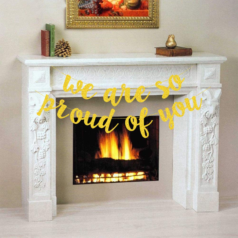 Easy to Assemble: this We are so proud of you banner garlands need some easy DIY, just need place gold ribbon through the hole at the top of each letter card stock, suit for Kindergarten, senior school, college, nursing, doctor congrats graduation party decoration, Birthday, Wedding, indoor or outdoor home decor.