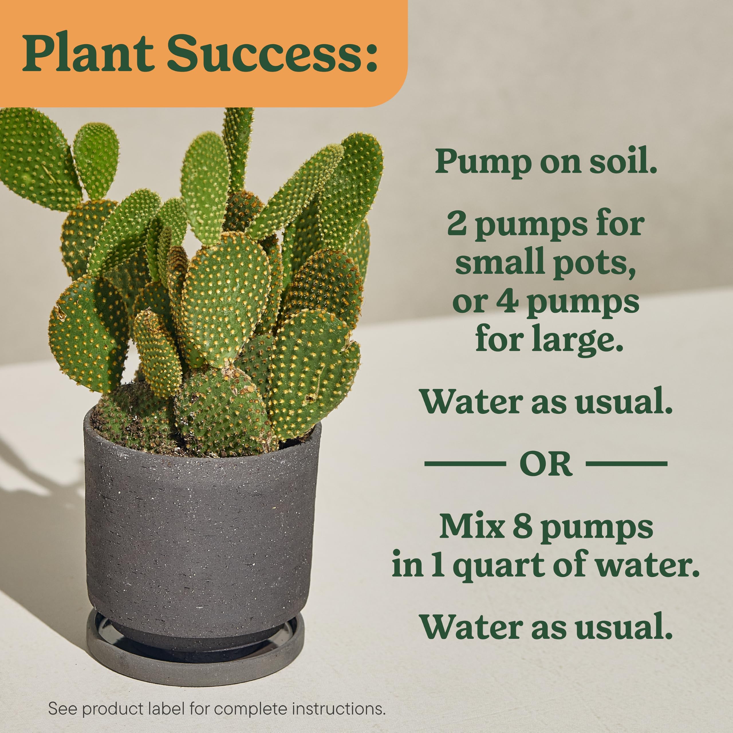 HOW TO USE: Apply this succulent plant food directly to the soil then water, or feed while you water by mixing 8 pumps of plant food with 1 quart of water; reapply every two weeks