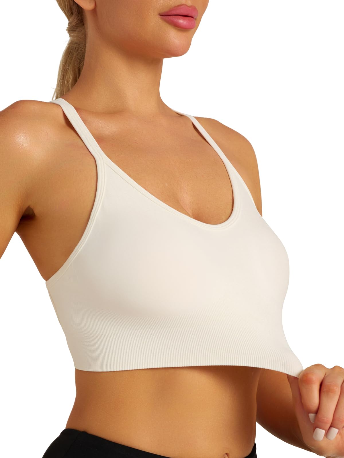 【COMFORT ALL DAY】The sculpting sports bra Crafted from innovative seamless fabric that moves with your body like a second skin, it's so soft and supportive that it feels like your own skin. With a 4-way stretch interlock blend, it ensures you feel light and free, allowing for a smooth and comfortable range of motion. Our essential Seamless Strappy Sports Bra is designed to keep you comfortable throughout your practice, giving you the confidence to conquer your goals.