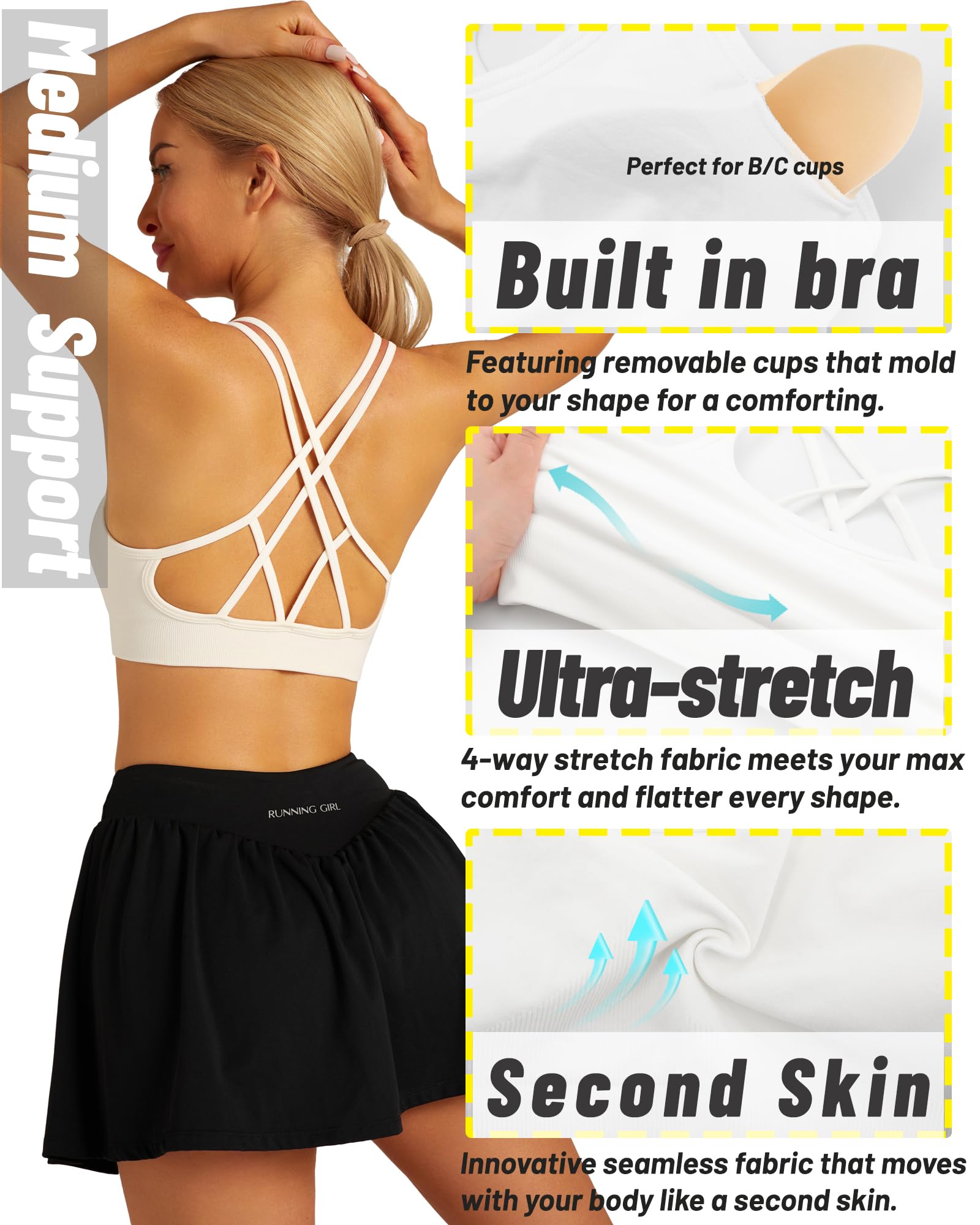 【THE BEST CHOICE】Our RUNNING GIRL sports bra is yoga tested and approved for yogis of all levels. It adds a touch of flair to your daily yoga routine or any other activity. Designed with the softest, most athletic premium fabric to ensure a secure and reliable fit. We wholeheartedly stand behind the quality of our sports bras and offer a 30-day no-risk customer service. Go ahead and try it on; there's absolutely nothing to worry about.