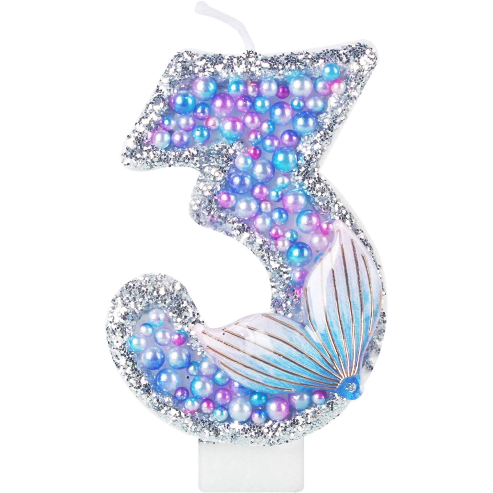 Sparkler Birthday Number Candles, Purple Pearls Mermaid Tail Number Birthday Candles for Birthday Cakes Mermaid Themed Birthday Decorations Party Favors Number Candle Cake Topper Features: Glitter Sparkler Shinning Delicate appearance: The mermaid happy birthday cake candles are meaningful for you to celebrate your birthday and nice cake topper decoration for embellishing your birthday cake and cupcake, bright glow for creating romantic atmosphere and adding a touch of elegant. Adapt to the venue: Ideal mermaid cake party decoration for many occasions, such as birthdays, anniversaries, retirement parties, family reunions, weddings, Hawaiian parties, even Christmas, must-have items for party cake, bring you memorable and meaningful party. Specifications: Quantity: 1 piece glitter mermaid number candle Material: wax, plastic Number Candle length: approx. 8 cm/ 3 inch Total length: approx. 11.5 cm/ 4.5 inch Color: as pictures shown Package includes: 1 x Glitter Mermaid Number 3 Numeral cake candles with mermaid tail and blue purple pearls Warm notices: Please allow little error on the size due to manual. Do not leave the lighted candles unattended. Please place candles out of reach of . And please do not light candles on or near flammable materials. Please keep the candle away from the fire when not in use, when burning, adult's supervision is needed.