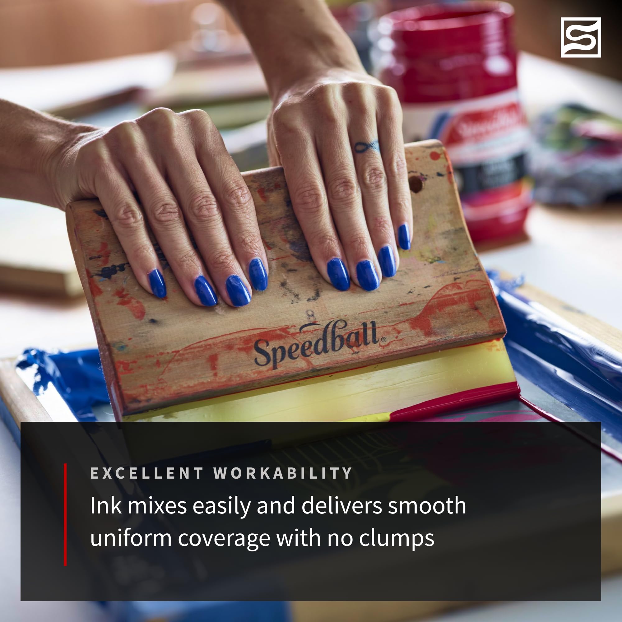Available in 25 rich colors, including fluorescent, glow-in-the-dark, and process colors, Speedball fabric screen printing ink offers artists more vibrant colors, greater coverage, smoother workability, softer hand easier cleanup than any other screen printing ink on the market. Ideal for printing on a range of fabrics, including cotton, polyester, blends, linen, rayon, and other synthetics (not recommended for nonporous fabrics such as nylon). inks produce a super soft-hand on fabric and are permanent once properly heat set/cured. Great for use on paper and Cardboard too! non-flammable and contains no offensives smells or solvents - soap and water cleanup.