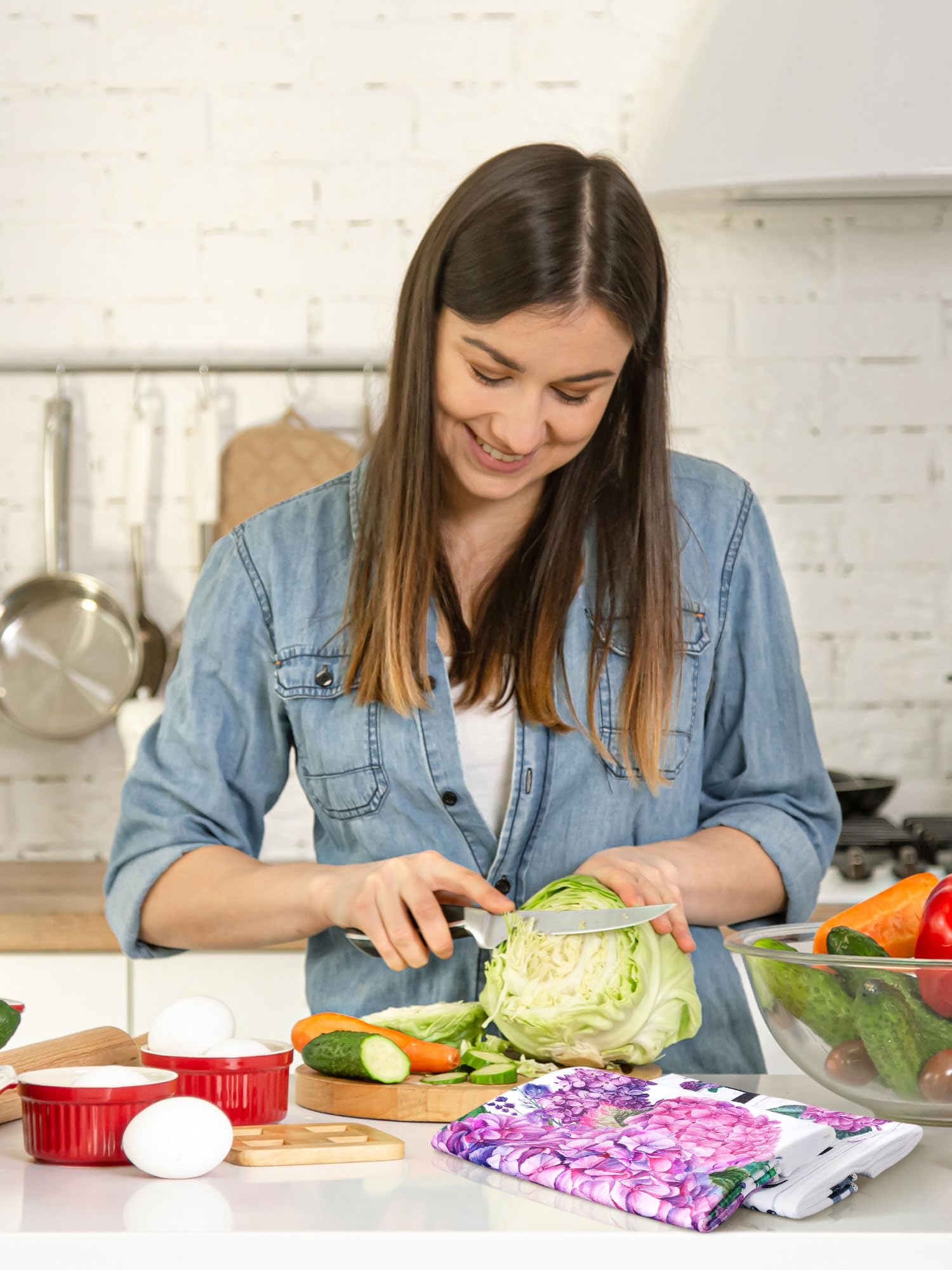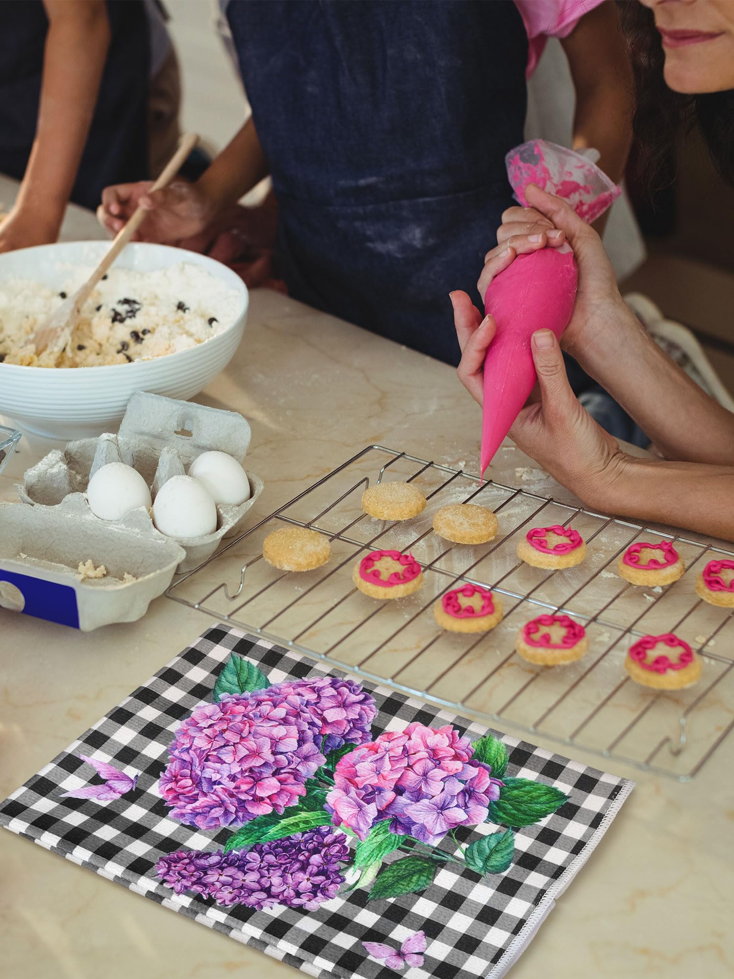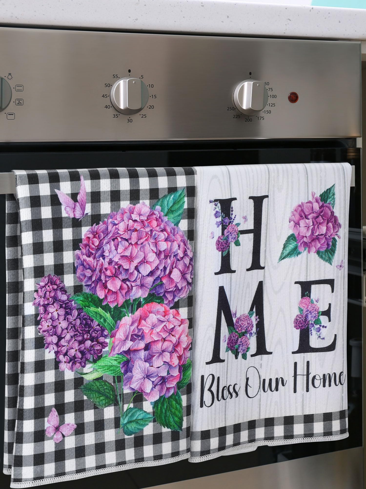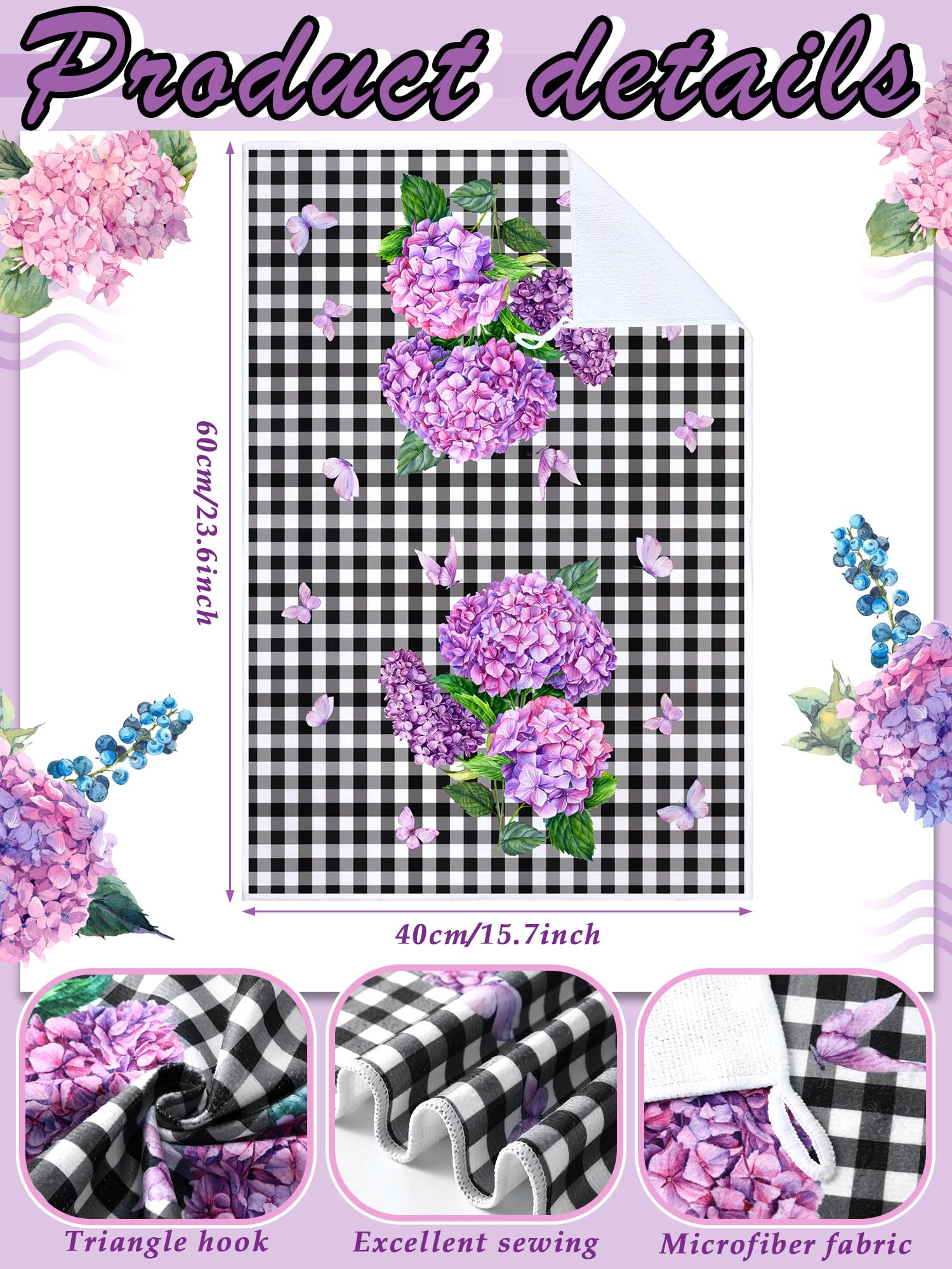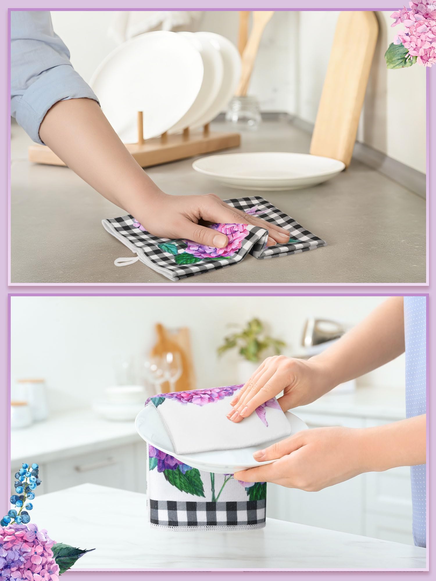 Hydrangea Themed Design: each kitchen towel is printed with hydrangea patterns, exquisite and lovely, elegant and stylish, the main purple create a fresh and comfortable seasonal atmosphere, adding bright color to your home and kitchen
