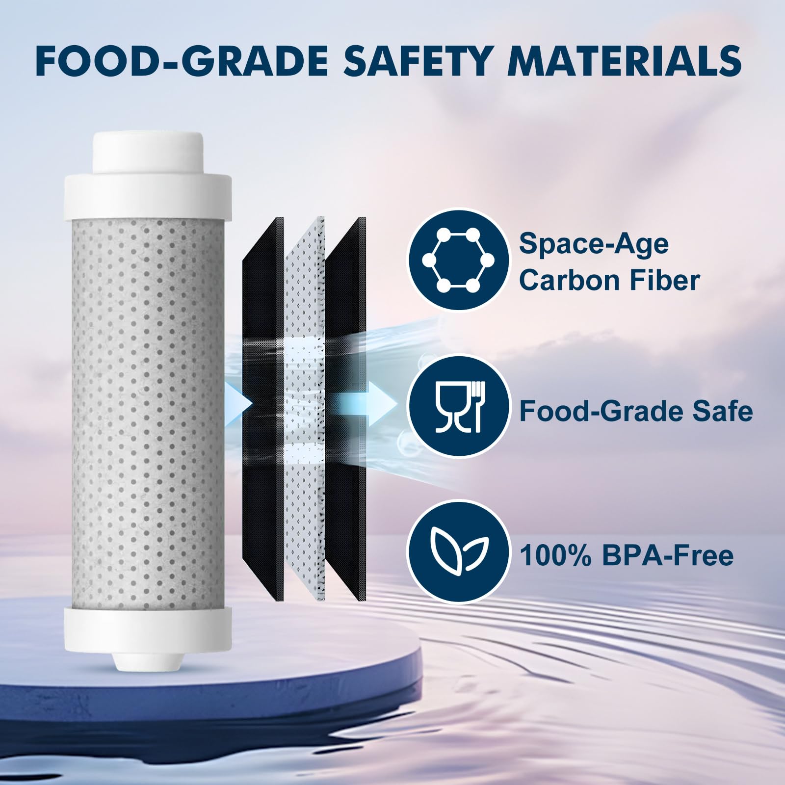 【High-Capacity Filter = Less Plastic Waste】 – One filter purifies up to 40 gallons (151 liters) or lasts approximately 2 months of daily use—equivalent to replacing 300 disposable plastic bottles. Each filter reduces up to 18 lbs of plastic waste. Note: The filter takes up 2 oz of internal volume.
