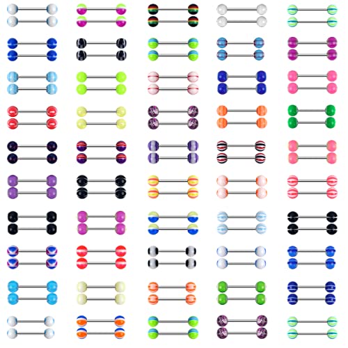 What You Get: 100 pieces assorted tongue rings- 2 pieces of 50 different types, colorful, flexible and cute tongue rings that you can wear on different days and occasions, meanwhile, you can share clear tongue rings with your family and friends at party, graduation, birthday, Christmas and so on, express yourself individually.