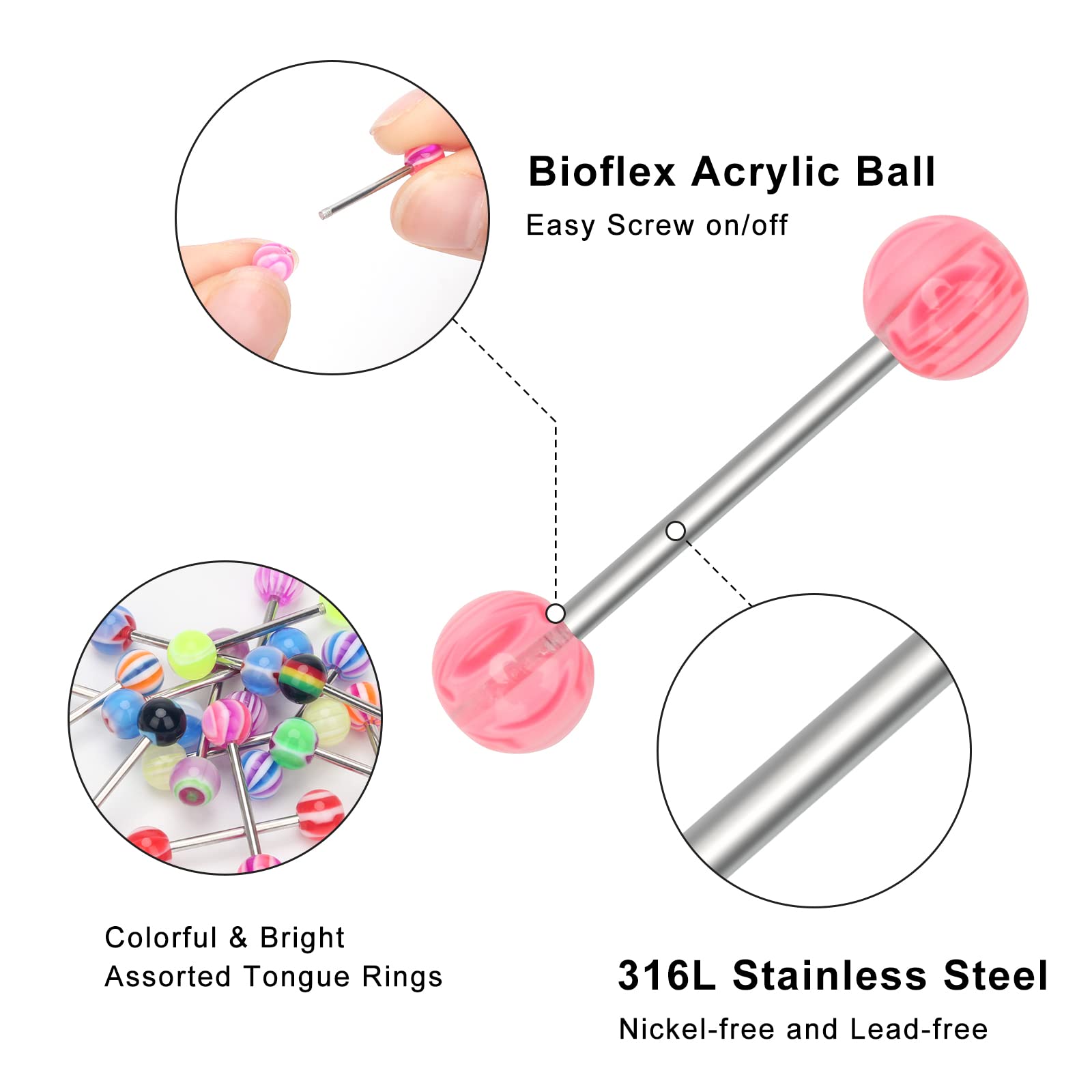 Hypoallergenic Material: the mixed tongue ring and tongue barbells are made of high-quality acrylic and stainless steel material which is nickel-free and lead-free you can long time wearing in hypo-allergy.