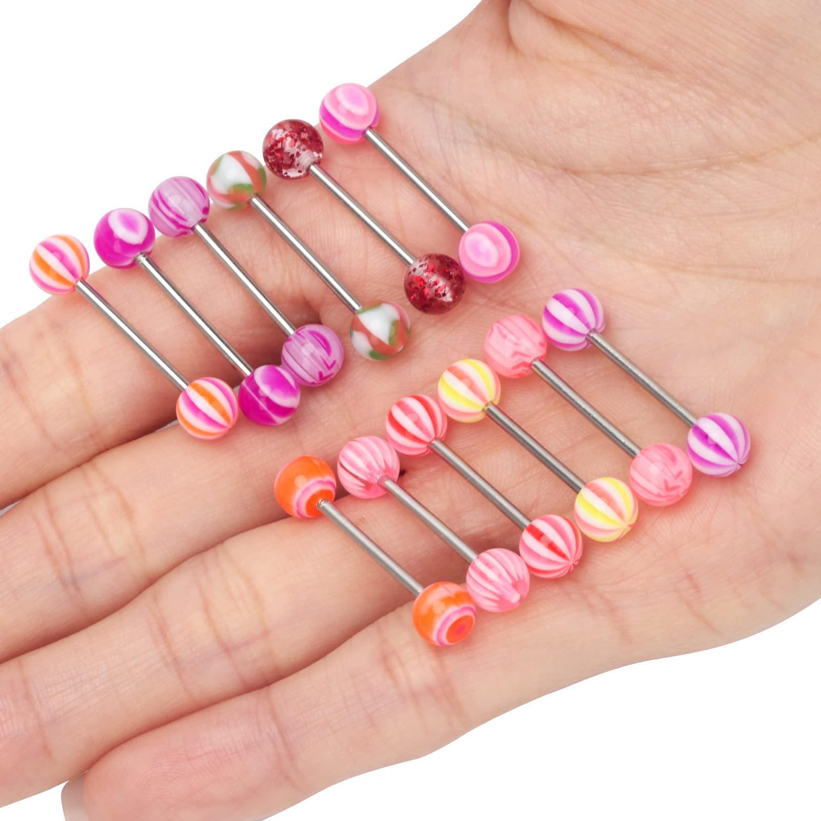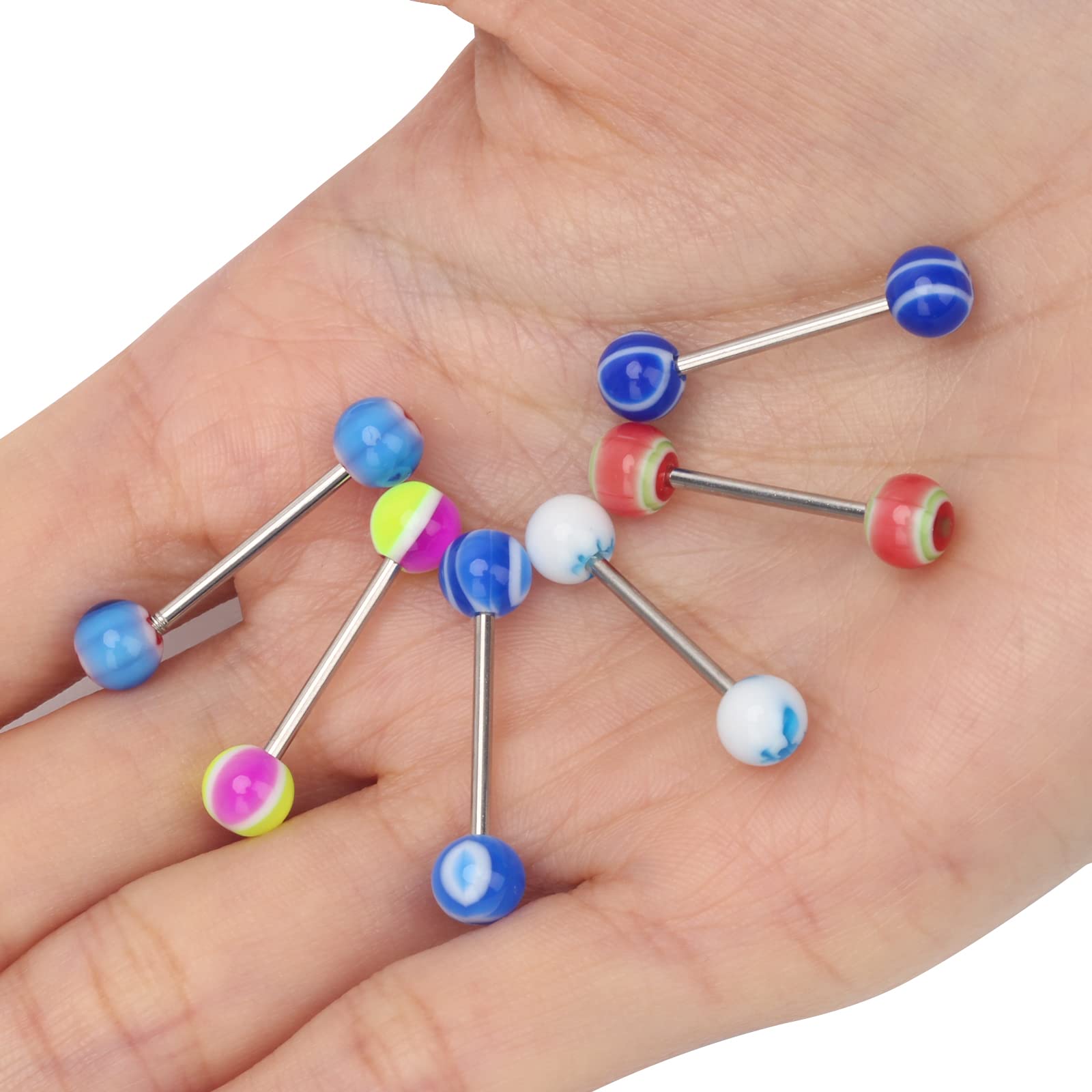 Wonderful Gift: it is a colorful & varied pattern tongue ring, a lot tongue rings means you can use it for your business, or for daily wearing, so it is a good choice to send it as a gift for your friends, family, and others wearing on party, graduation, birthday, Christmas, anniversary, valentine's day and you can try to wear it as lip ring, earring, etc.