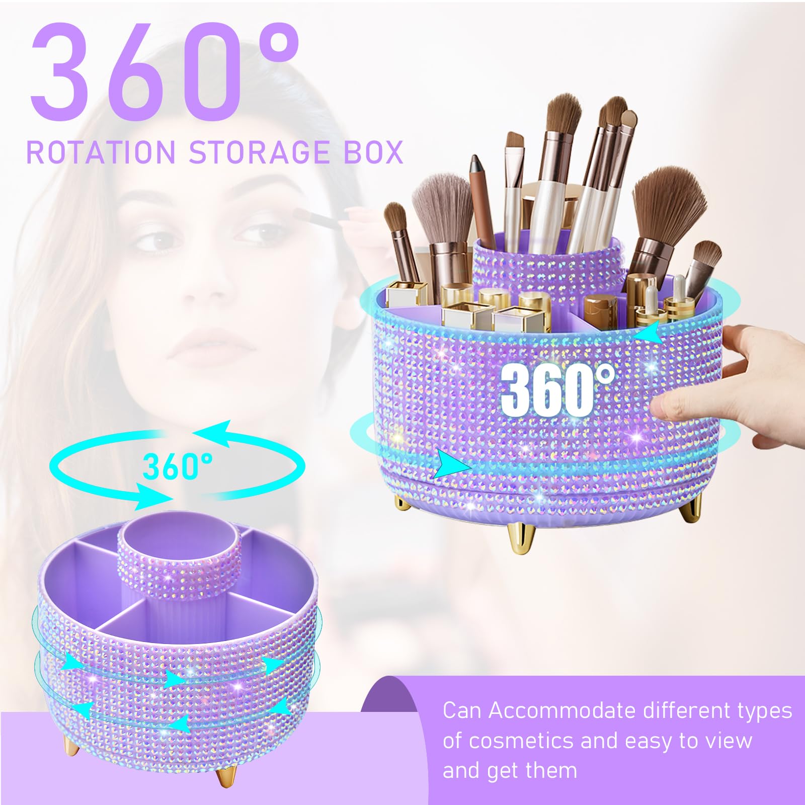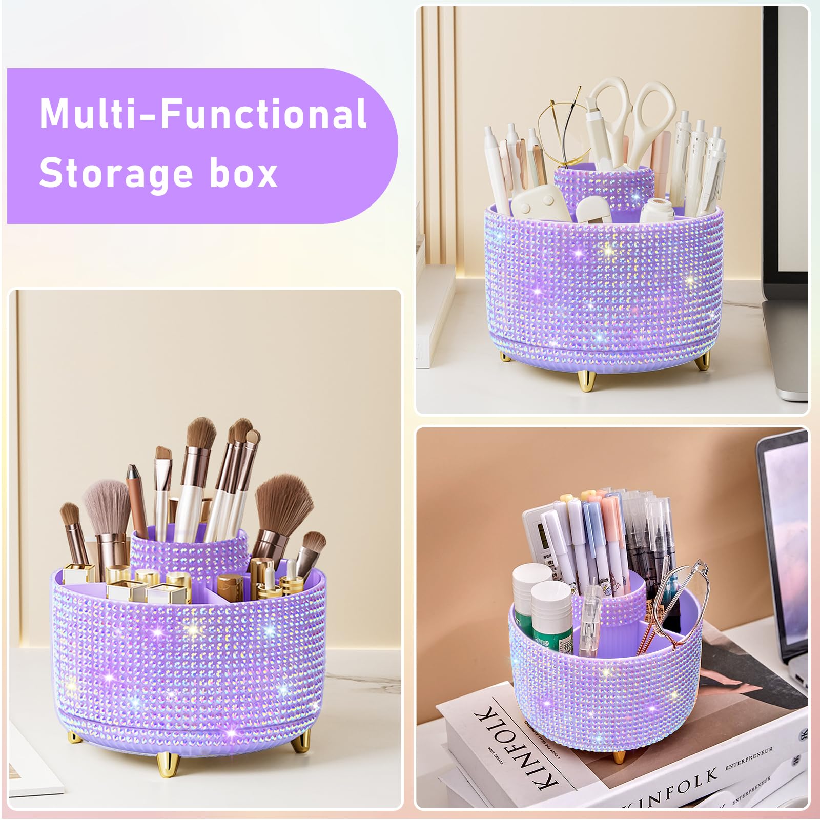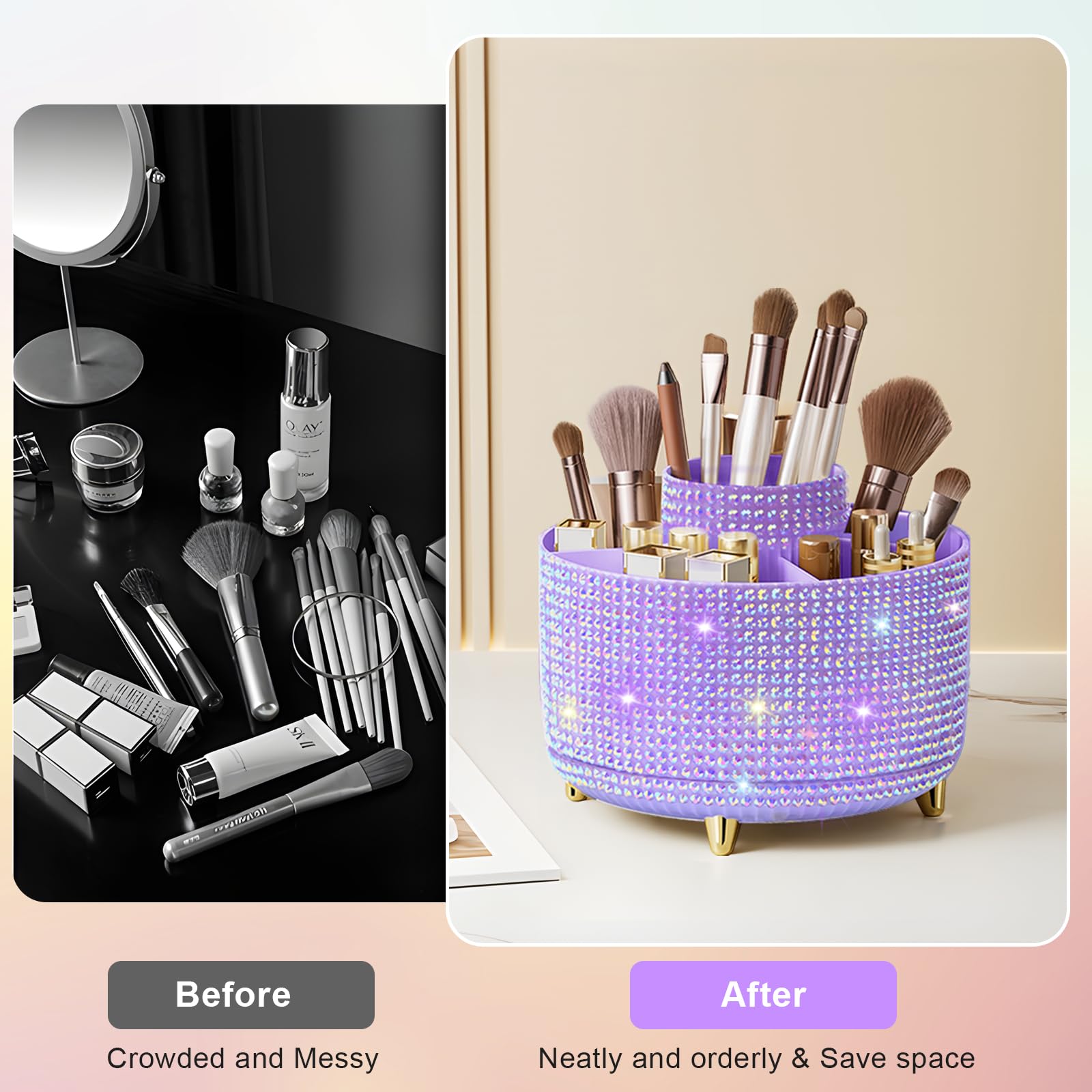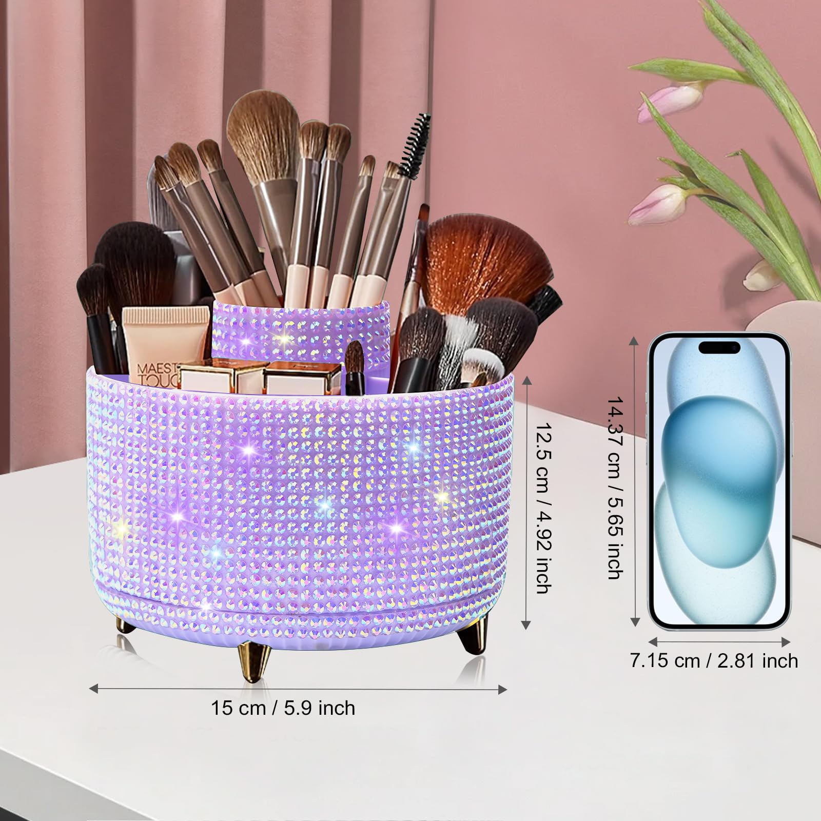 Shiny Diamond Decoration Makeup Organizers: Our bling Makeup Brush Holder is handmade, the box body is carefully decorated with premium rhinestones, reflecting charming light under the light, like a work of art, lighting up your dressing space, adding a touch of elegance and charm to the dressing table; you can not only use it as a pen holder, but also as a multi-functional storage Organizer in the office, kitchen and other spaces, exquisite and versatile