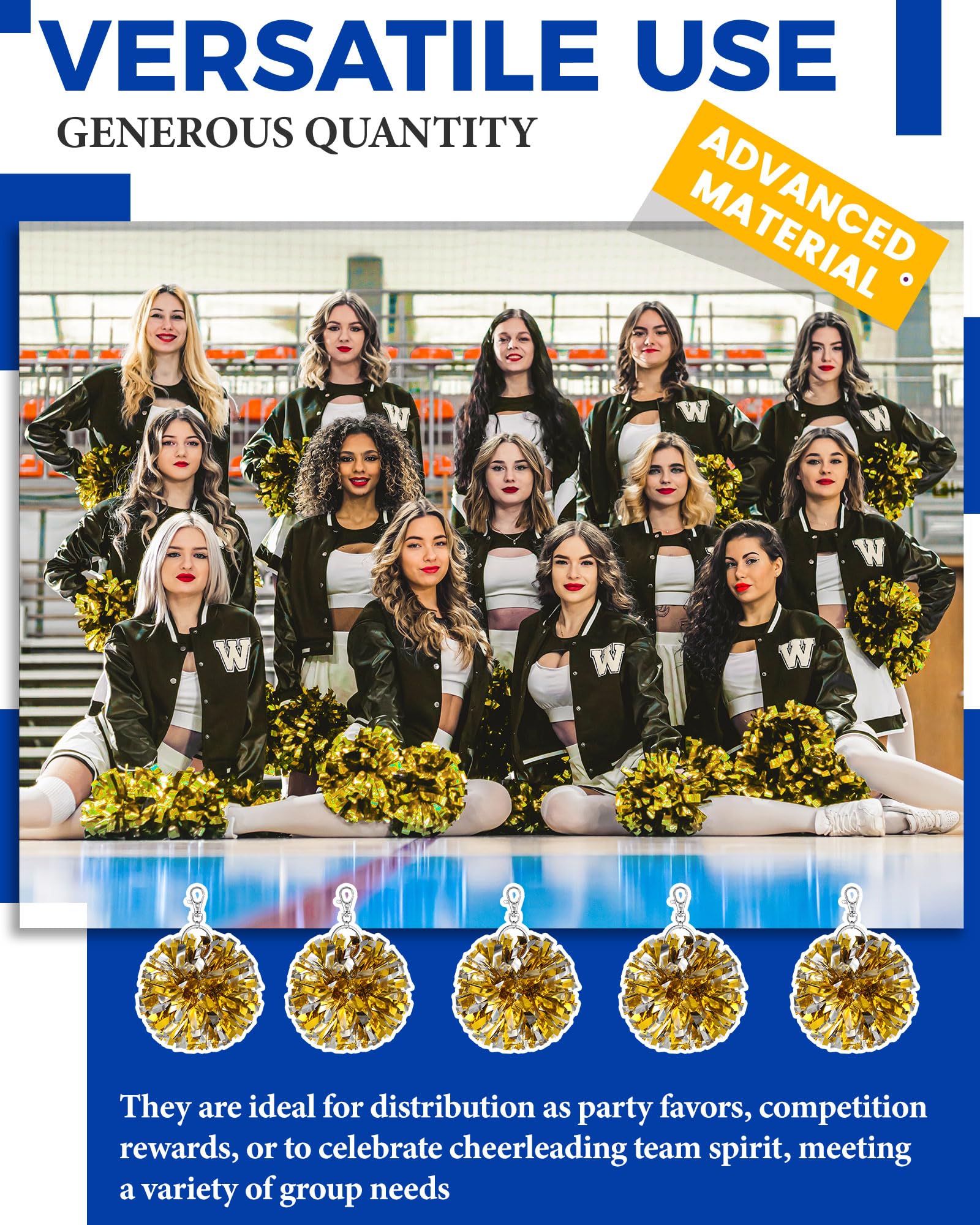Group Spirit Booster: these bulk cheer keychains are perfect for cheerleading, dance performances, and sports events; Their metallic gold silver design adds elegance and sophistication; They're also great for daily use and decorating rooms or Christmas trees