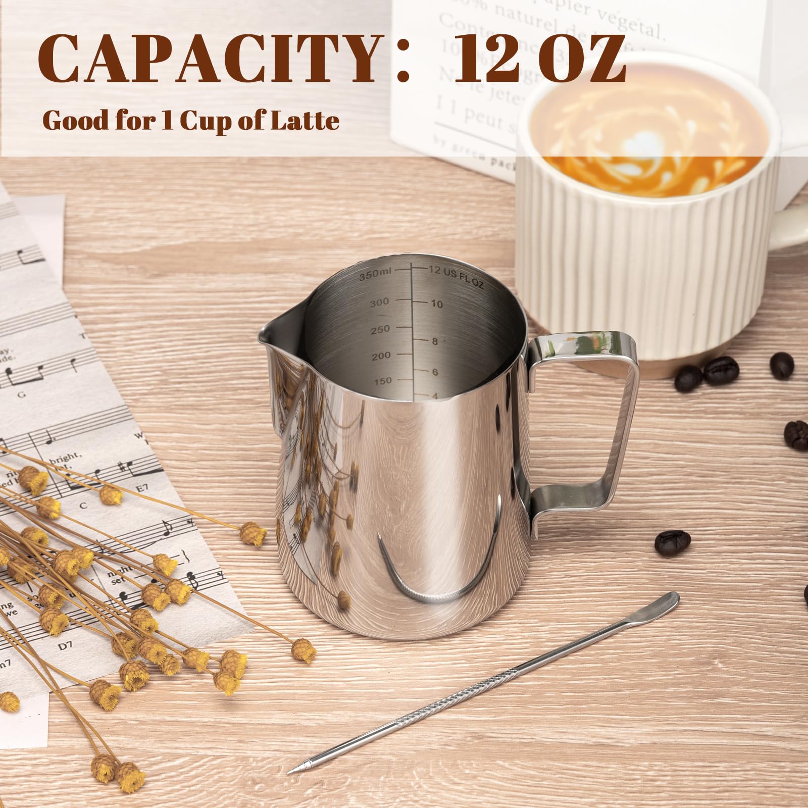 PROPER CAPACITY: The coffee frother cup has precise scale mark inside for you to control the milk needed easily. The marks are laser printed without groove. It is easy to wash and dishwasher safe without residual milk foam