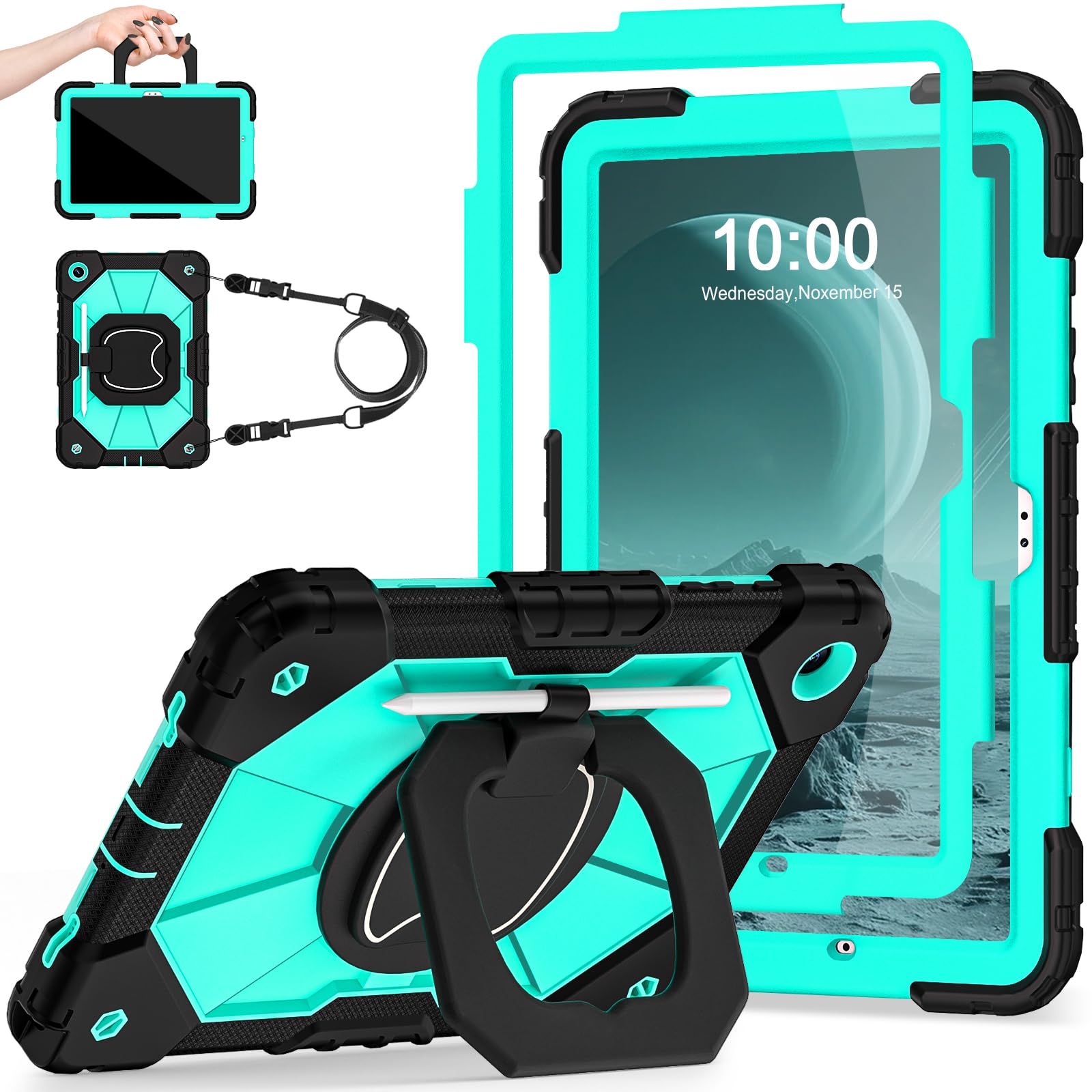 【PREMIUM PROTECTION】This samsung galaxy tab a9+ case is made of shockproof PC & soft silicone(with built-in screen protector),so nice to touch,provides a better grip.Unique shock-proof design keeps your tablet better protected to avoid daily bumps,scrapes,defeat 99% accidental drops,unbreakable!