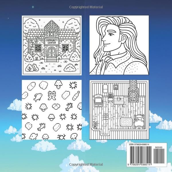 A Cozy Coloring Escape for Stardew Fans, Gamers, and Cottagecore Souls Step away from the screen and into the peaceful world of The Unofficial Stardew Coloring Book — a charming collection of 50+ whimsical pages inspired by your favorite pixelated farm life game. Inside this unofficial fan-made coloring book, you’ll discover: 🐮 Cute farm animals like chickens, cows, ducks, and pigs 🌽 Harvest-ready crops from parsnips to pumpkins 🧑🌾 Portraits of marriageable villagers — your favorite eligible characters brought to life 🍄 Forest spirits, slimes, and magical creatures that roam beyond your fields 🏡 Cozy cottages, greenhouses, and scenic farm scenes 🌿 Relaxing pixel art & bold outlines designed for easy coloring with pens, markers, or crayons Perfect for gamers, artists, and anyone who dreams of soft sunsets and seasonal harvests, this coloring book is your invitation to unplug and reconnect with your creative side. Why You’ll Love It: Single-sided pages to prevent bleed-through Bold black outlines ideal for all coloring skill levels A nostalgic tribute to farming sims and cottagecore magic Great as a gift for Stardew Valley fans or a relaxing treat for yourself Whether you’re an adult gamer, a cozy genre enthusiast, or just looking to unwind, The Unofficial Stardew Coloring Book is your portal to peace, play, and a little pixel-perfect joy.