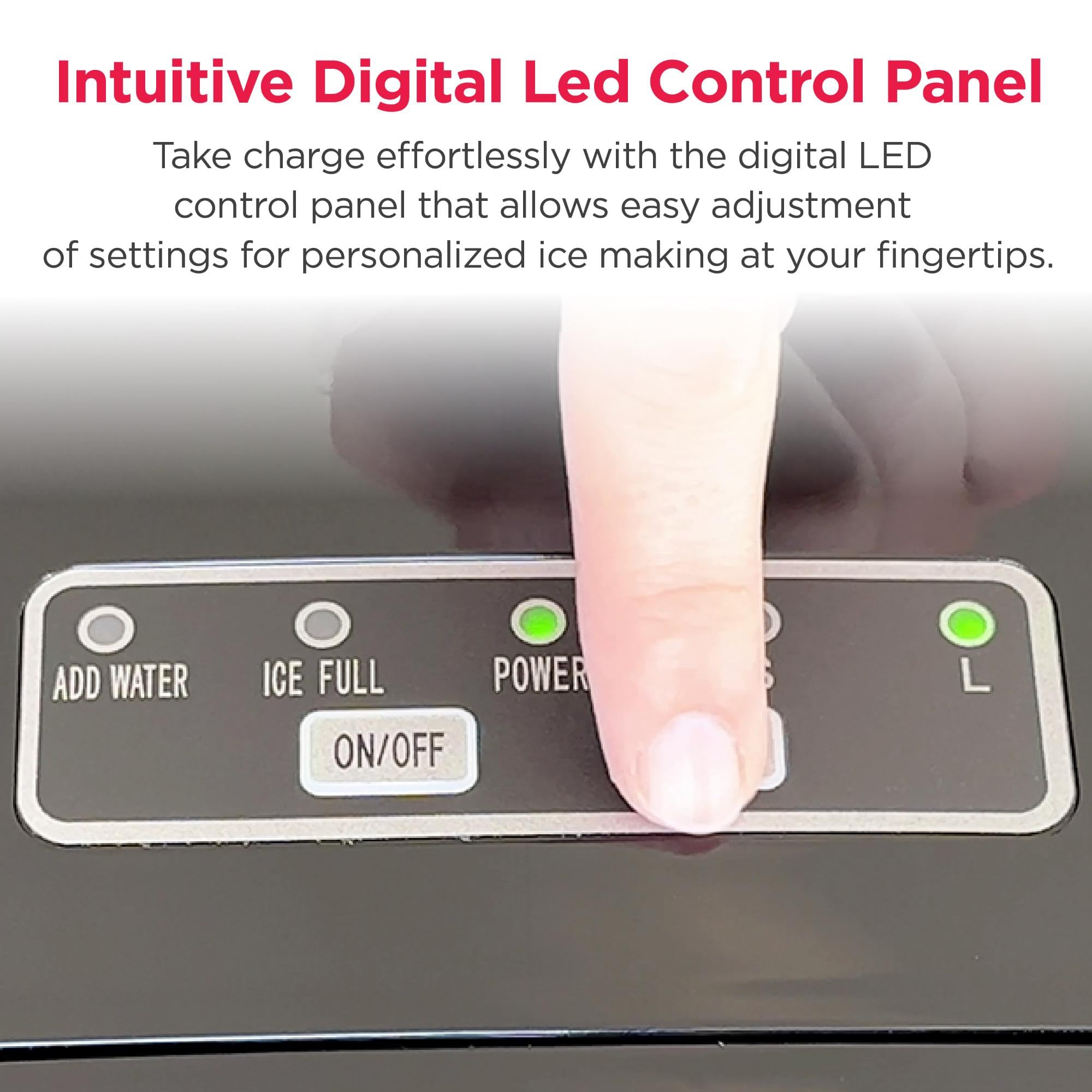 Intuitive Control - The ice maker features a transparent window so you can easily monitor ice levels and see when ice is being made. Take full control with the digital LED control panel, allowing easy adjustment of settings and ice size selection for ultimate convenience.