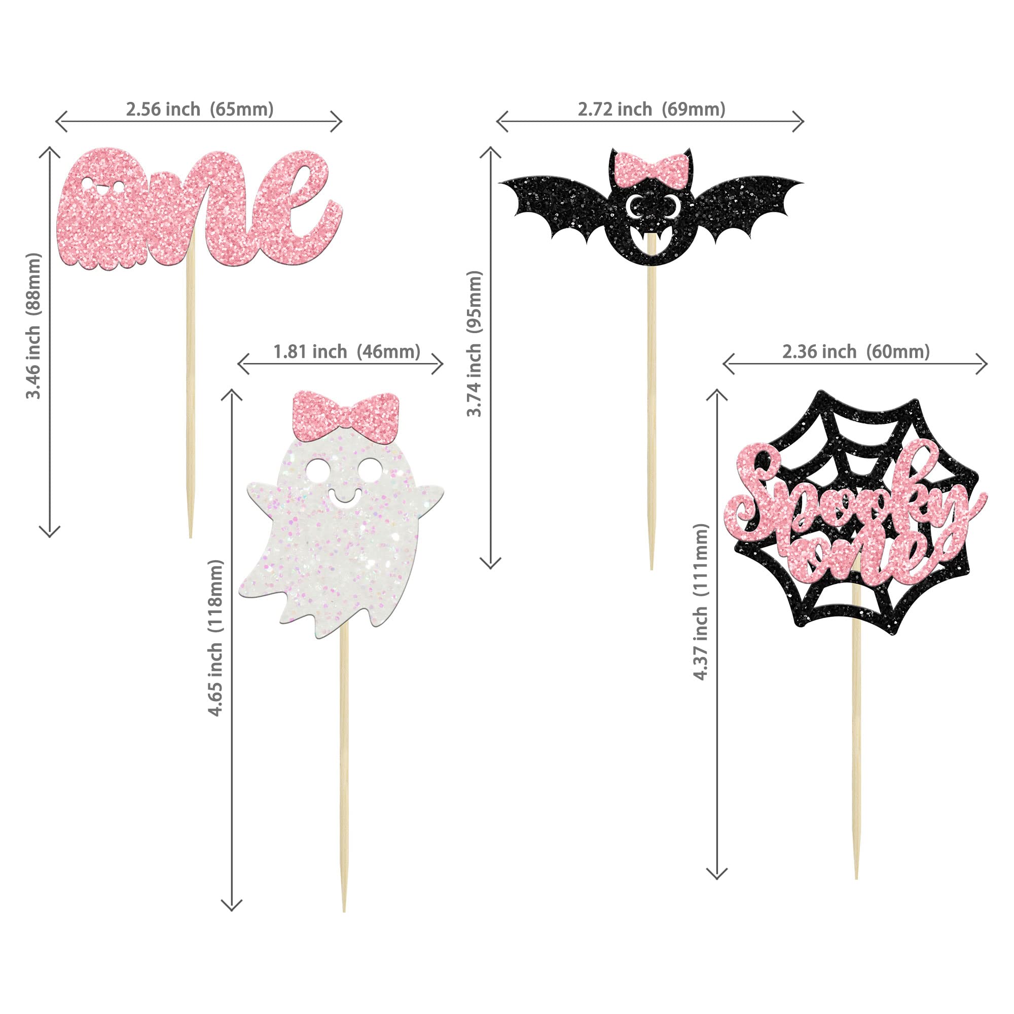 Material and Usage - Usage: They are perfect for Halloween theme party, Pink Spooky One theme First Birthday Party, Halloween baby shower party, celebrating birthday theme cake decorations supplies, which make the cupcake look tastier and more attractive. - Material: Made of paper material, solid, not easy to deform and fade and can reuse for many times; Please don't put them into oven for they are only decorative and not edible. Package and Size - Package: Pack of 24Pcs. Size: W 2.6"*H 3.5"/W 6.5*H 9cm(Include Stick). Comes with assembled, so you can insert into your cake directly, which make your cake more interesting. - If you want to return the item, please kindly contact us first, then we will deal with it until you are satisfied. Note 1.The cupcake topper picks have pointed end, please keep away from children when using. 2. These cupcake toppers are for decoration purposes only, not edible and do not place in oven or use for baking. 3. Due to the light and screen difference, the item's color may be slightly different from the pictures.