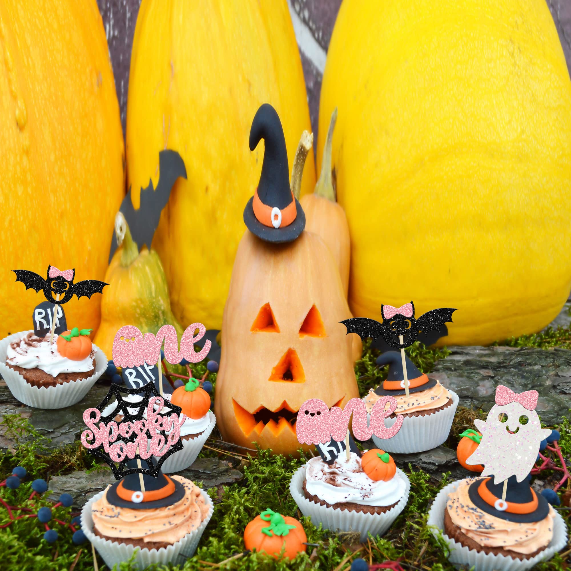 🍰【Halloween Party Supplies】: 24Pcs Halloween Pink One Cupcake Toppers are perfect for Halloween theme party, Pink Spooky One theme First Birthday Party, Halloween baby shower party, celebrating birthday theme cake decorations supplies, they will make your cupcake more attractive and bring the fun to your party, make your guests fall in love with them!