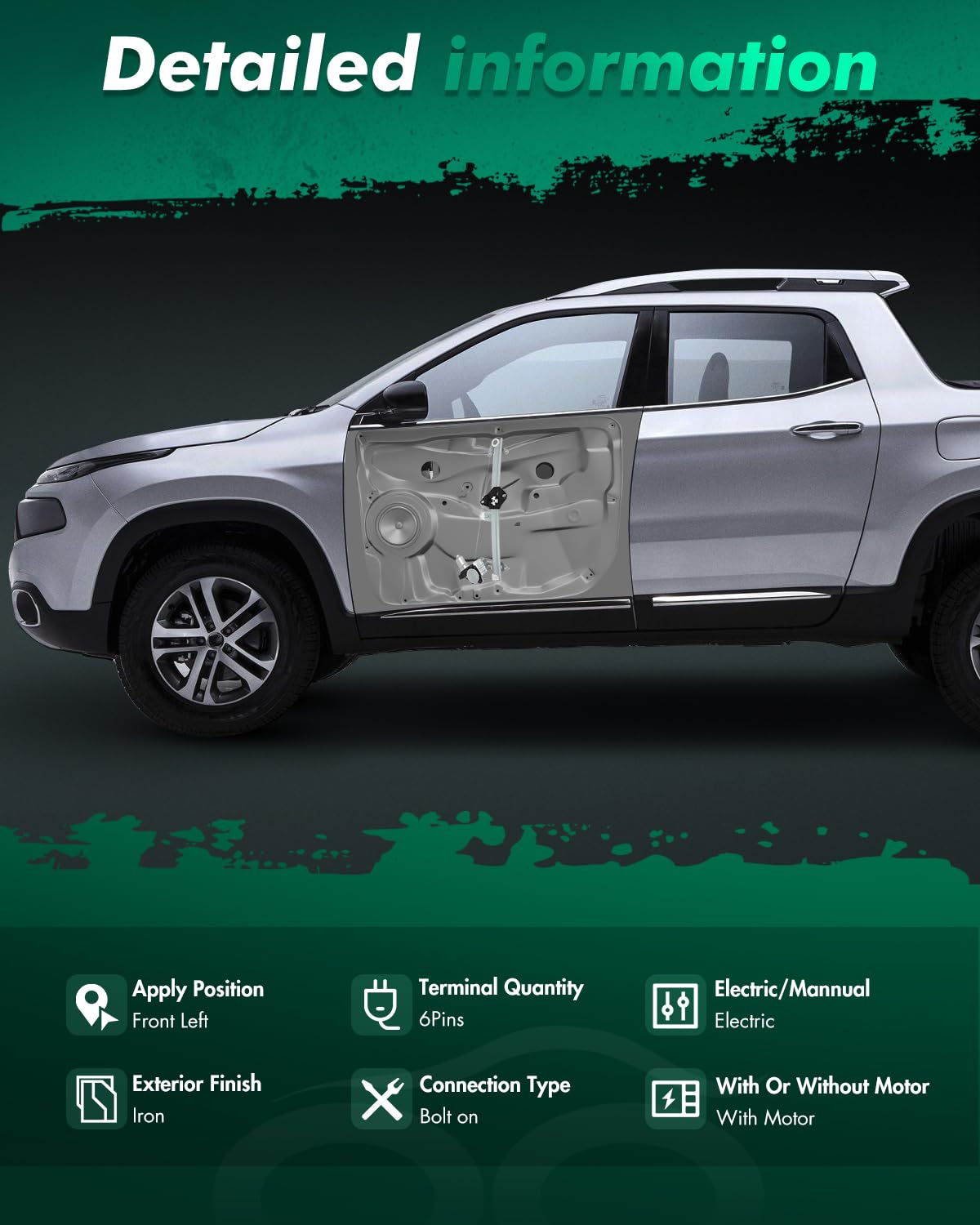 EASY INSTALLATION - OE Replacement Window Regulator.Reverse-engineered to match the original equipment shape and dimensions to provide a direct, seamless fit