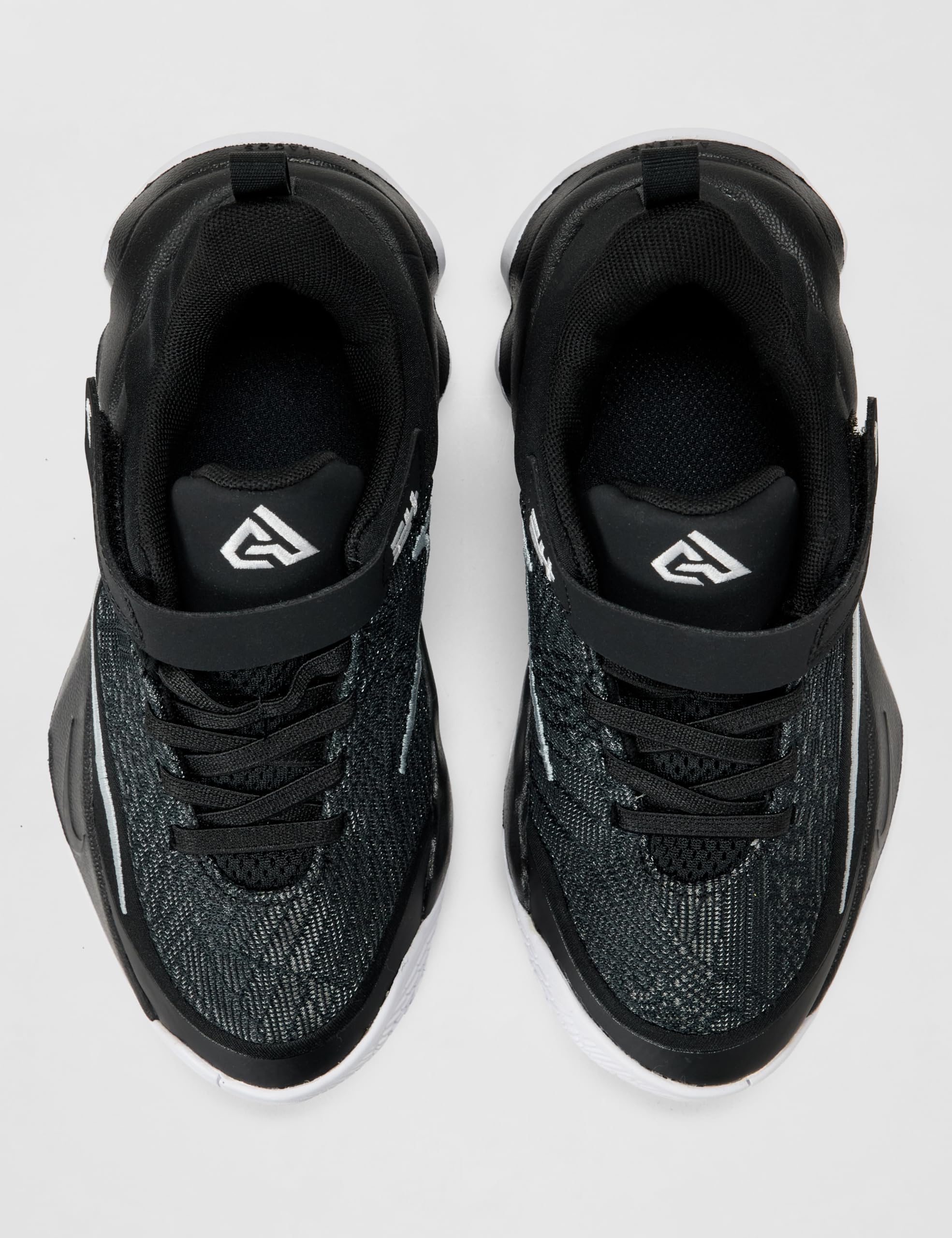 Laces work with a hook-and-loop strap and oversized pull tab on the heel to help kids easily pull these on and lock in their fit.