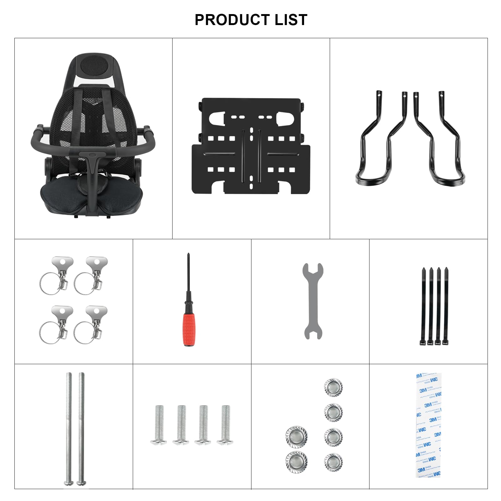 【EASY TO INSTALL】This back child bike seat adopts a split design, which is assembled from two parts: the seat and the foot pedal; First, fix the steel plate to the frame with stainless steel buckles, and then use screws to connect and fix the seat and foot pedal, making installation simple; When not in use, the seat can be disassembled and stored to increase its service life