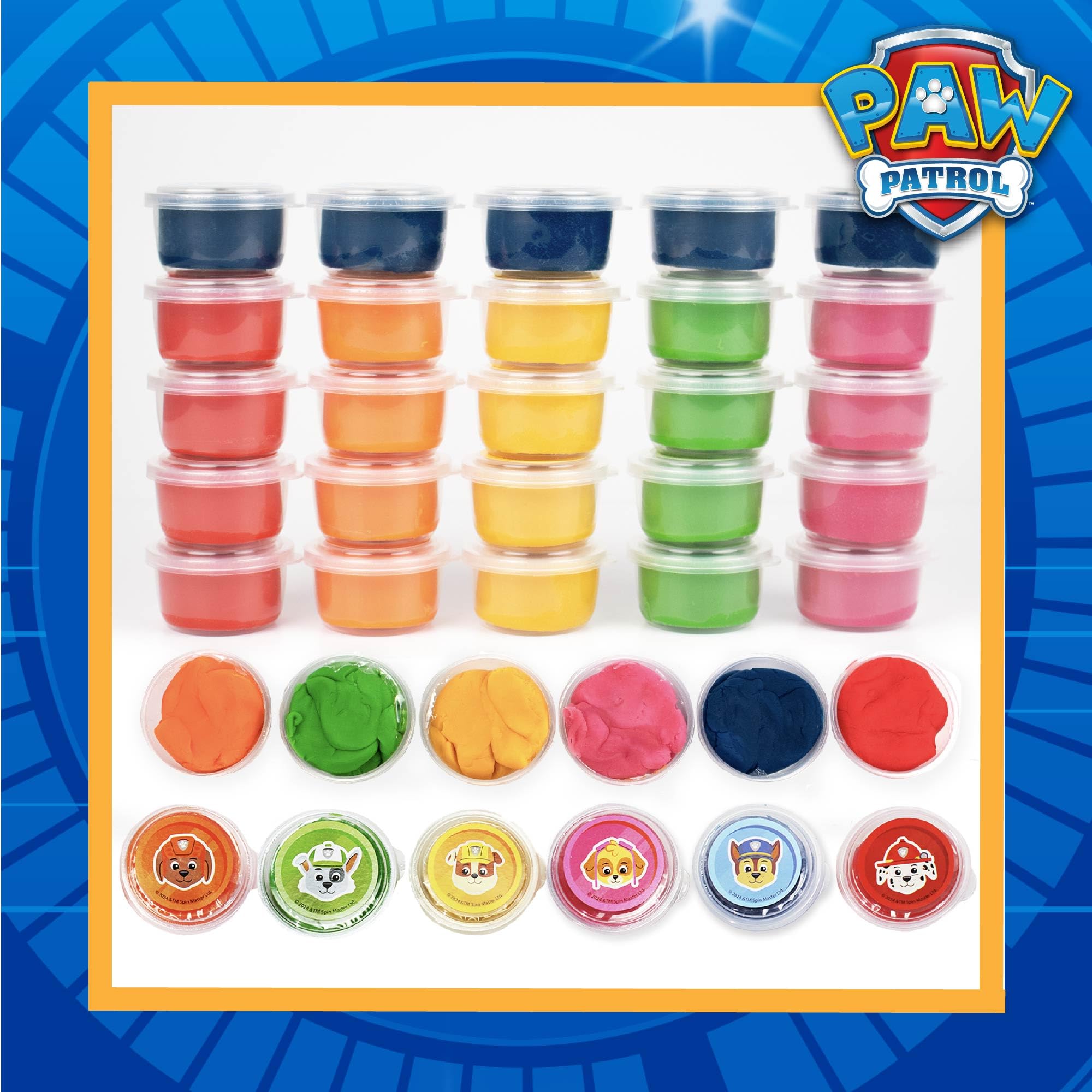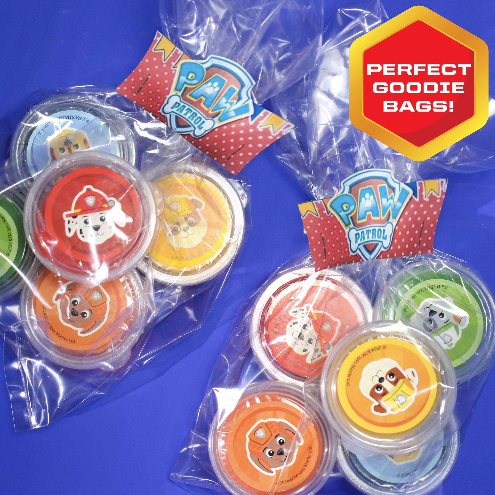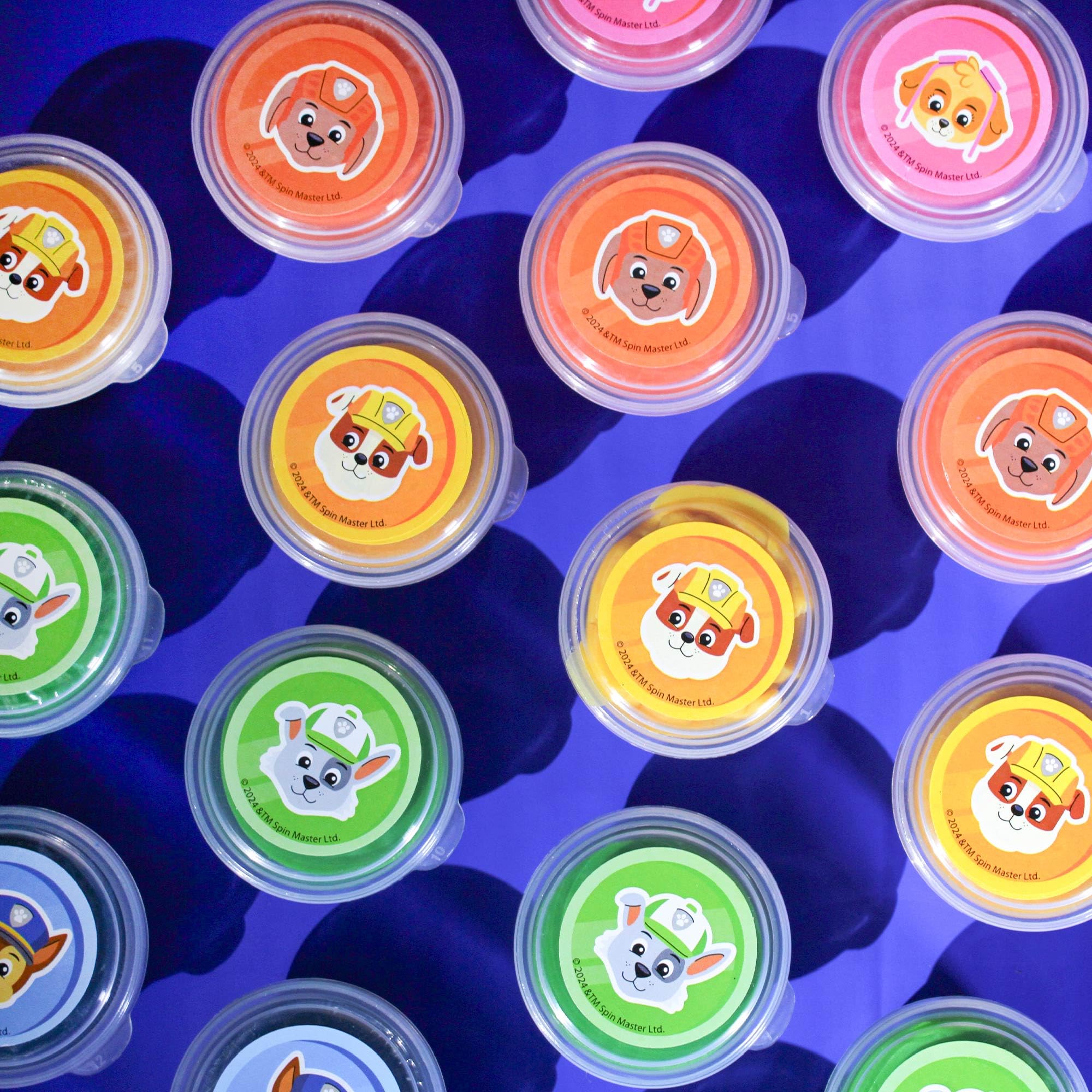 25 PAW PATROL SENSORY DOUGHS: This party pack comes with 25 tubs of squishy dough — that’s more than enough to share with friends, keep little paws busy for hours, or even use as Paw Patrol party favors!