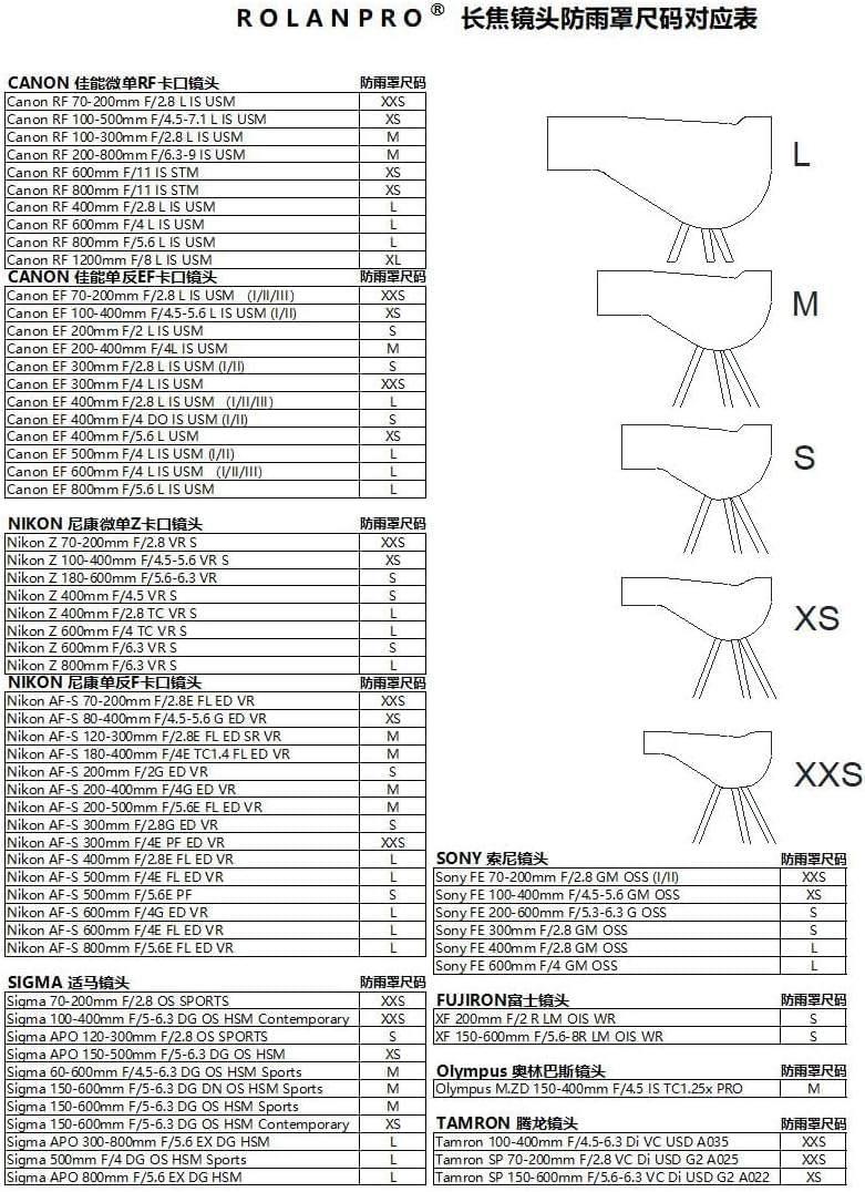 ROLANPRO L rain cover length is 90cm, suitable for lens hood outer diameter size:15cm-21cm;