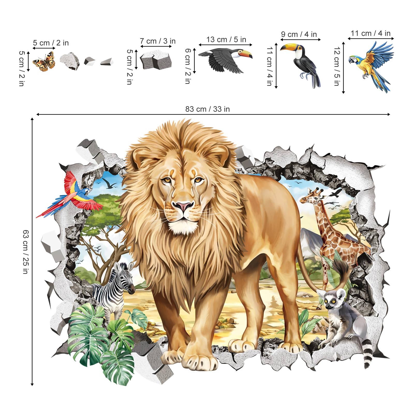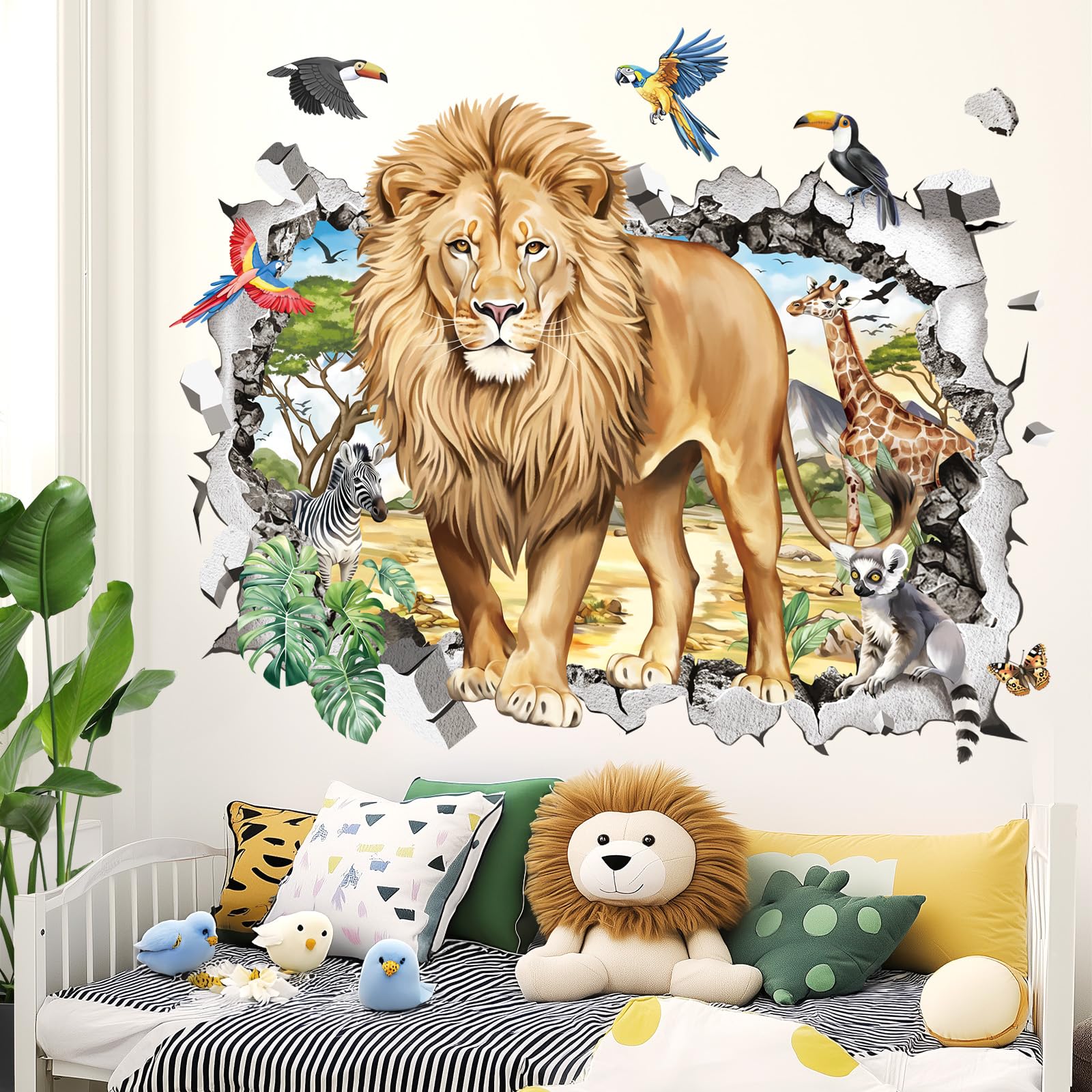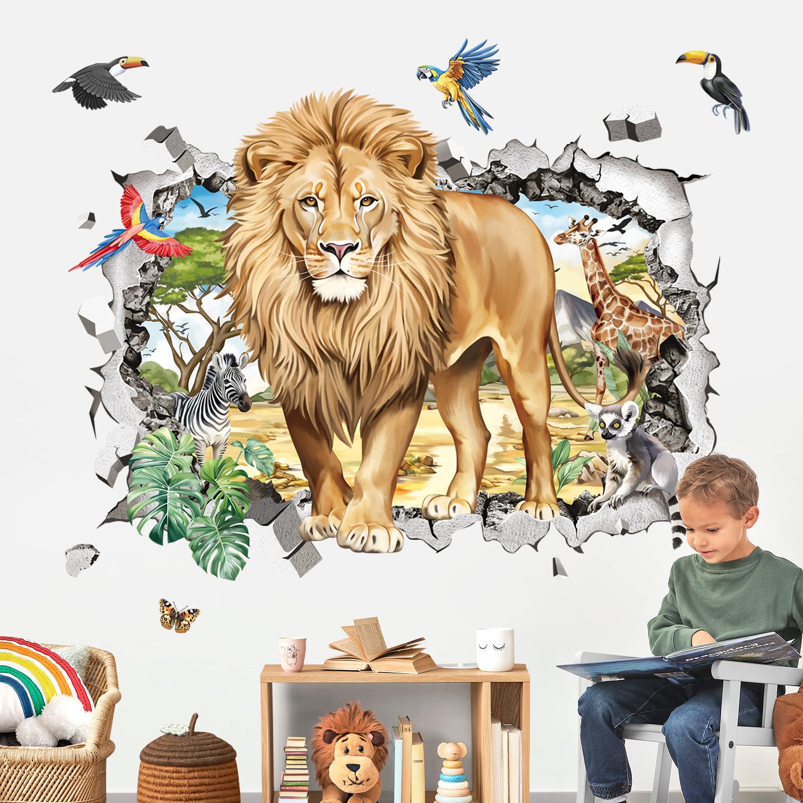 decalmile 3D safari animals lion wall decals are perfect to decorate kids room, bedroom, living room, baby nursery and playroom.
