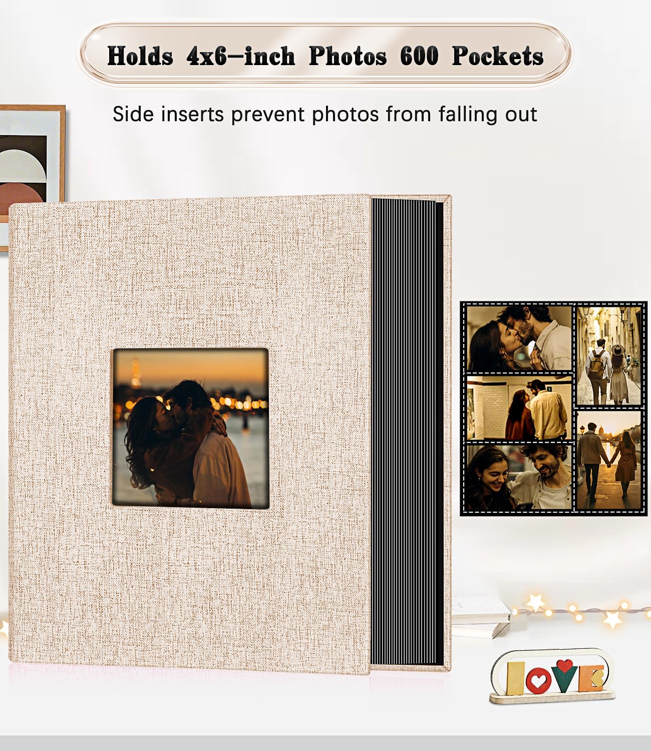 💖 Perfect Storage Capacity: This hardcover photo book is 13.2 L x 12.4 W x 2.25 Thick (inches) with 60 sheets/120 pages. Each page has 5 pockets that hold a total of 600 4x6 photos.Photos fit snugly in the pockets and won't slip out. Perfect for storing your family, wedding, anniversary, baby and holiday photos, so you can organise and display your photos beautifully and conveniently.