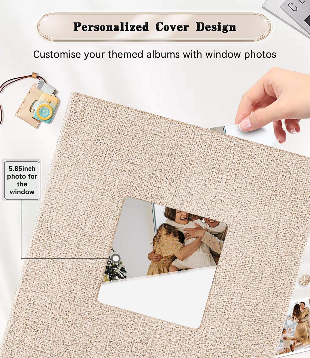 💖 Exquisite Window Design: This 4x6 photo album cover is wrapped in high quality linen, the classic linen cover not only adds vintage sophistication, but also ensures durability and protects your precious photos.The cover of the album has a flexible openable window with replaceable window photos (5.85 inch), customised to change your personal theme album.