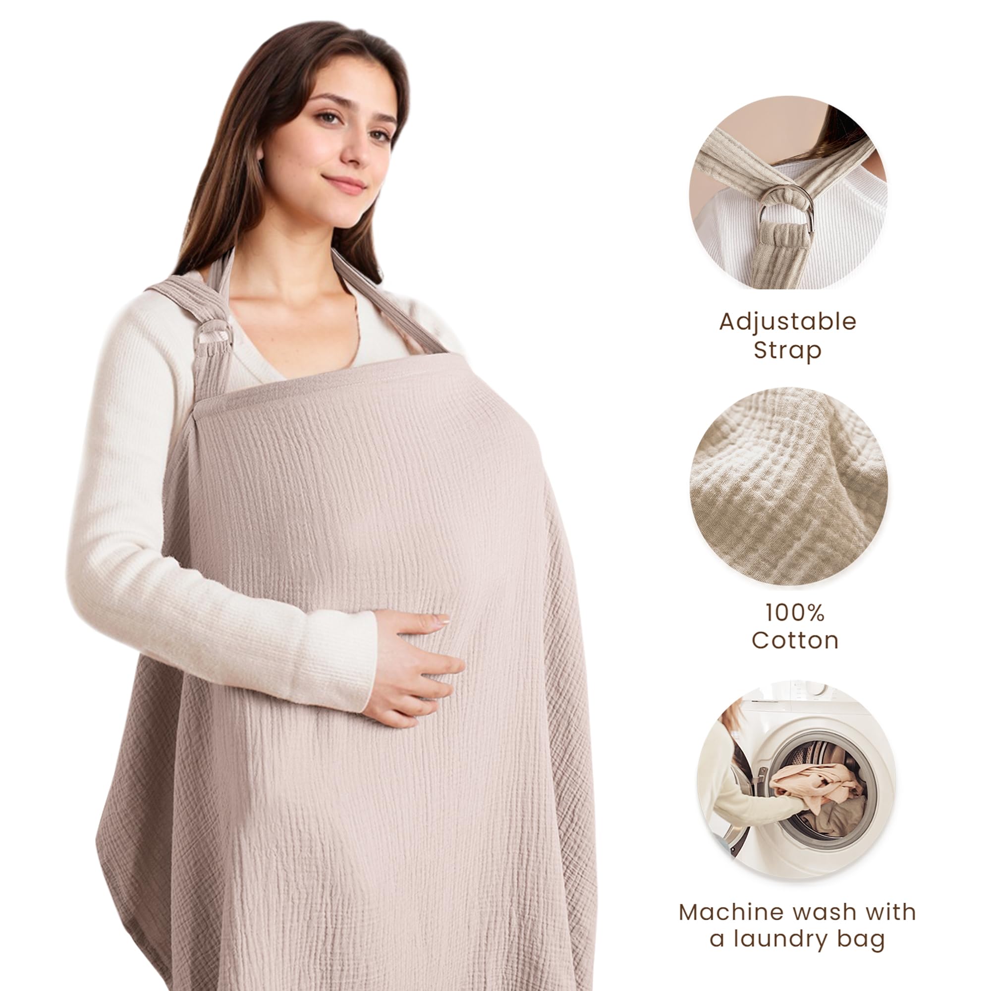 Premium Fabric: Nursing cover for breastfeeding are made of 100% cotton (Muslin) for maximum breathable with skin-friendly soft touch and retain its color after washed for several times. It makes both mothers and babies feel comfortable and content during breastfeeding