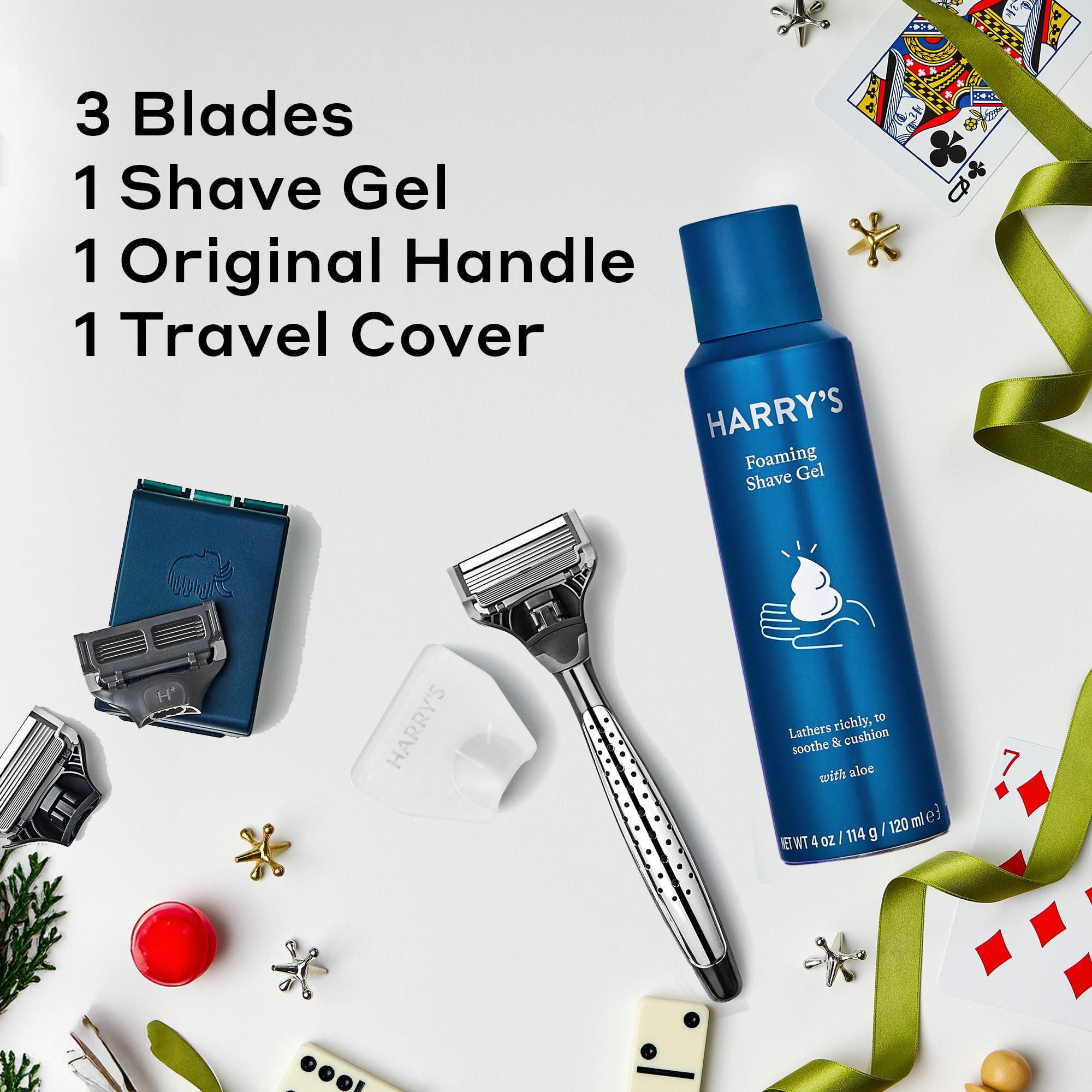 The Harry’s Original Razor Gift Set is a premium, ready-to-gift shaving kit designed to deliver a smooth, comfortable shave from start to finish. Packaged together in a box for easy gifting, this set makes an ideal choice for Father’s Day gifts, birthdays, holidays, or any occasion when you’re searching for gifts for men who have everything. Thoughtful, practical, and high-quality, it’s a grooming upgrade he’ll actually use every day. This complete men’s shaving gift set includes one Harry’s craft metal razor handle with integrated rubber grip dots for enhanced control, three German-engineered 5-blade razor refills, one 4 oz foaming shave gel, and one protective travel blade cover. Each razor refill cartridge features five sharp blades made of German-engineered steel, along with a flex hinge that adapts to facial contours and a lubricating strip for added glide and comfort. The razor handle is crafted using innovative techniques that integrate a dotted rubber grip pattern into a smooth metallic body. Meticulously fine-tuned during the prototype stage, the handle feels weighty, well-balanced, and comfortable in the hand, giving you confidence and control with every stroke. The precision-engineered blades are designed to provide a close, smooth shave whether you’re grooming your face, neck, sideburns, or head. The included 4 oz foaming shave gel creates a rich lather that helps protect your face and keeps you in control of your shave. Its aloe-enriched formula is made with gentle, honest ingredients that soothe and refresh skin while lifting hair for a smooth, clean shave in seconds. The shave gel is dermatologist tested, paraben-free, sulfate-free, and never tested on animals, making it a dependable addition to your daily grooming routine. The clamshell travel cover shields your blades between uses and features a ventilation system to help keep blades dry. Designed to fit all Harry’s Original razors, it’s ideal for storing your razor at home or protecting it in a gym bag or carry-on while traveling. To use, rub the shave gel between your fingers to build a full-bodied foam, then apply to a clean, damp face and let it sit briefly to help condition the hair. Glide your razor gently across your face using light strokes, rinsing blades as needed. When finished, rinse off for a fresh, clean finish and store the razor in the travel cover once dry. Whether you’re shopping for Father’s Day gifts for dad, holiday gifts for men, a birthday gift for him, or truly great gifts for men who have everything, the Harry’s Original Gift Set combines performance, quality, and convenience in one thoughtfully packaged box. Harry's Original blades are only compatible with Harry's Original handles.