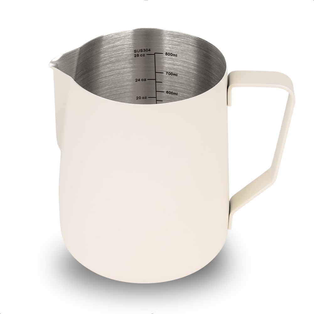 PREMIUM MATERIAL: watchget milk frothing pitcher is made of food grade 304 stainless steel with creamy white coating which is durable and sturdy, wear-resistant and heat resistant. Unbreakable for daily use and can serve you a long time. Easy to clean and use, it offers excellent temperature control.