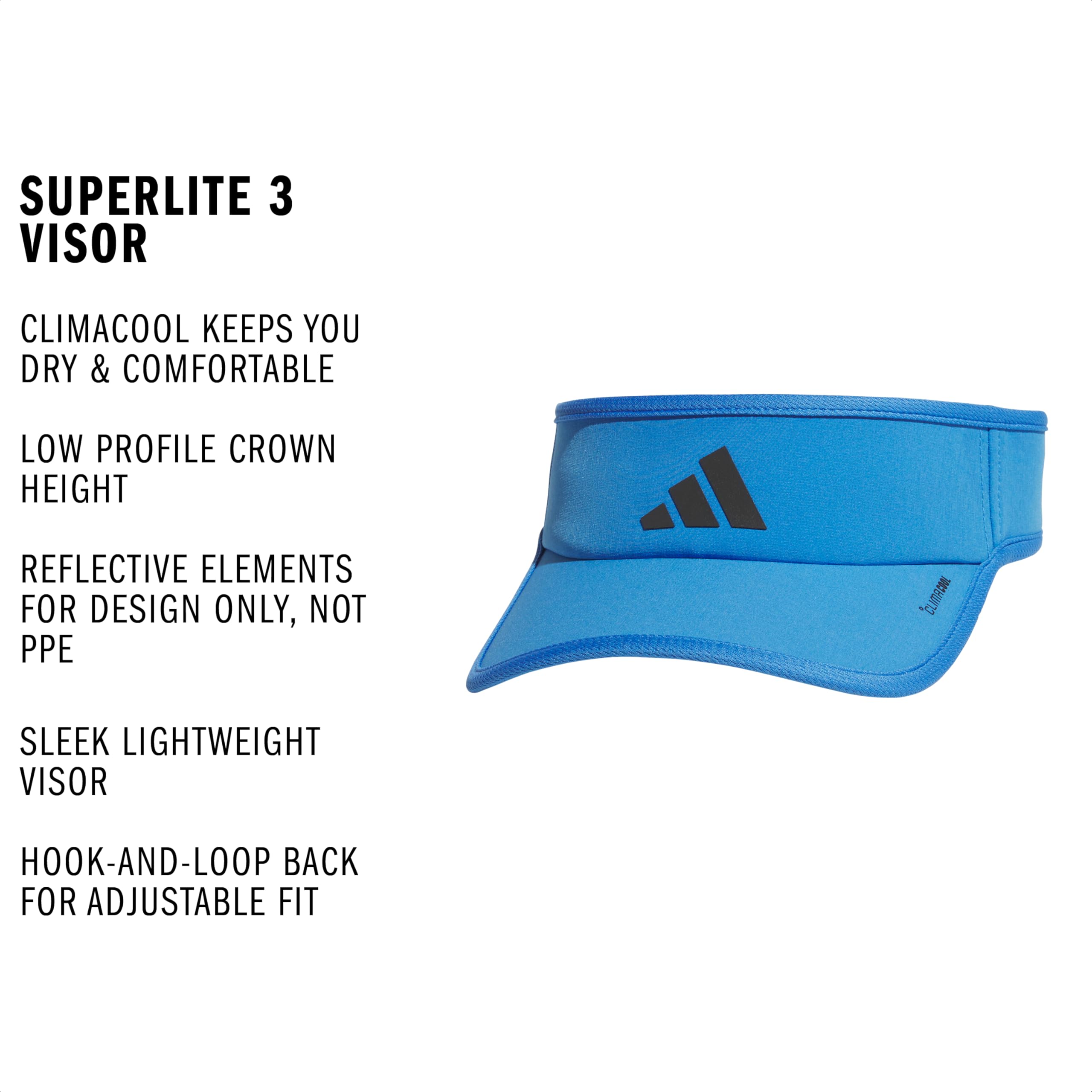 Description An ultra-lightweight option, whether you're on the tennis court or the fairway. This adidas visor is made with mesh to help you stay cool and dry. It adjusts at the back for a custom fit. This product has reflective elements for design and decoration reasons only. It is not intended or suitable for the use as Personal Protective Equipment PPE (e.g. to protect by enhanced visibility) and would not meet mandatory PPE standards