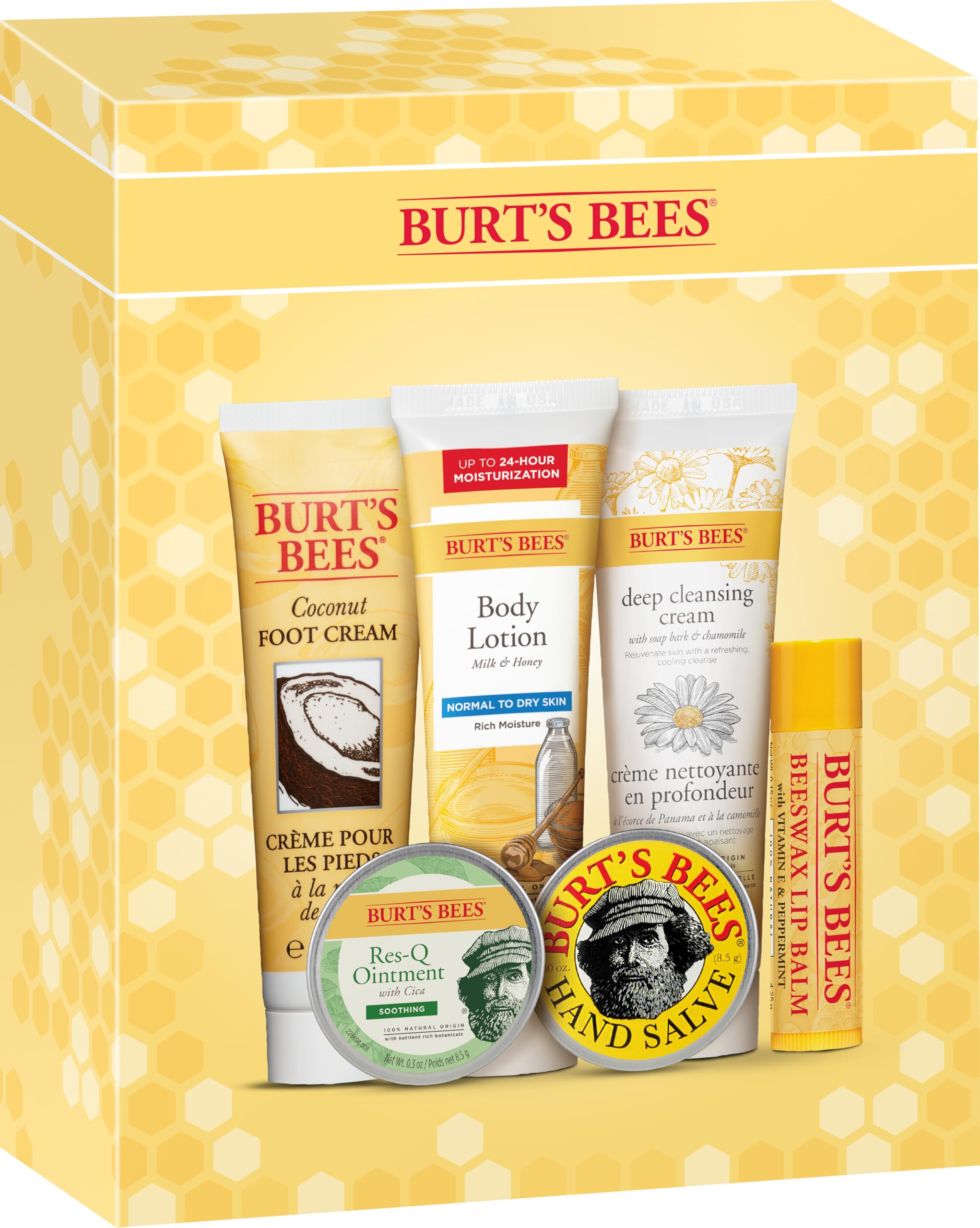 BODY CARE ESSENTIALS: This Burt’s Bees travel set comes with Coconut Foot Cream, Milk & Honey Body Lotion, Soap Bark & Chamomile Cleansing Cream, Res-Q Ointment, Hand Salve and Beeswax Lip Balm