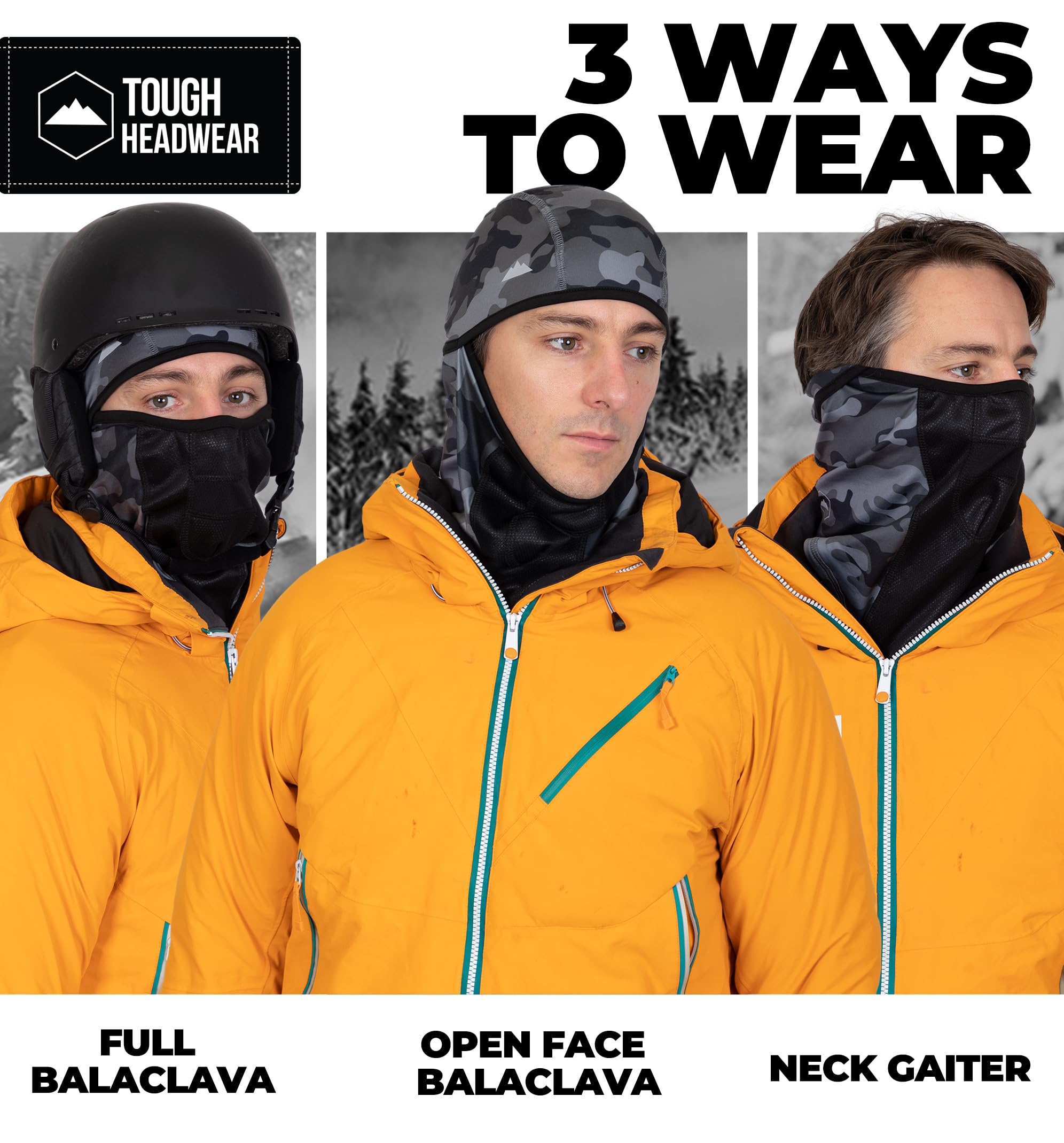 STRETCHY HELMET-FRIENDLY FIT: Designed with flat lock seams and a flexible hinge, it fits seamlessly under helmets, ensuring maximum comfort for skiers, snowboarders, or motorcyclists.