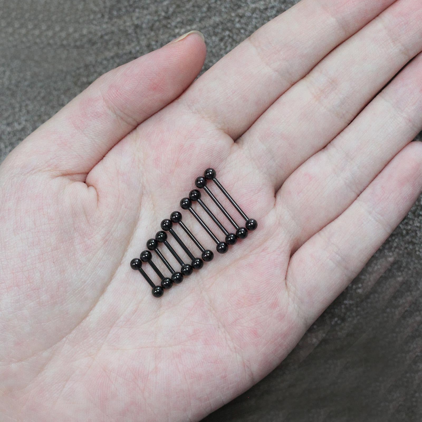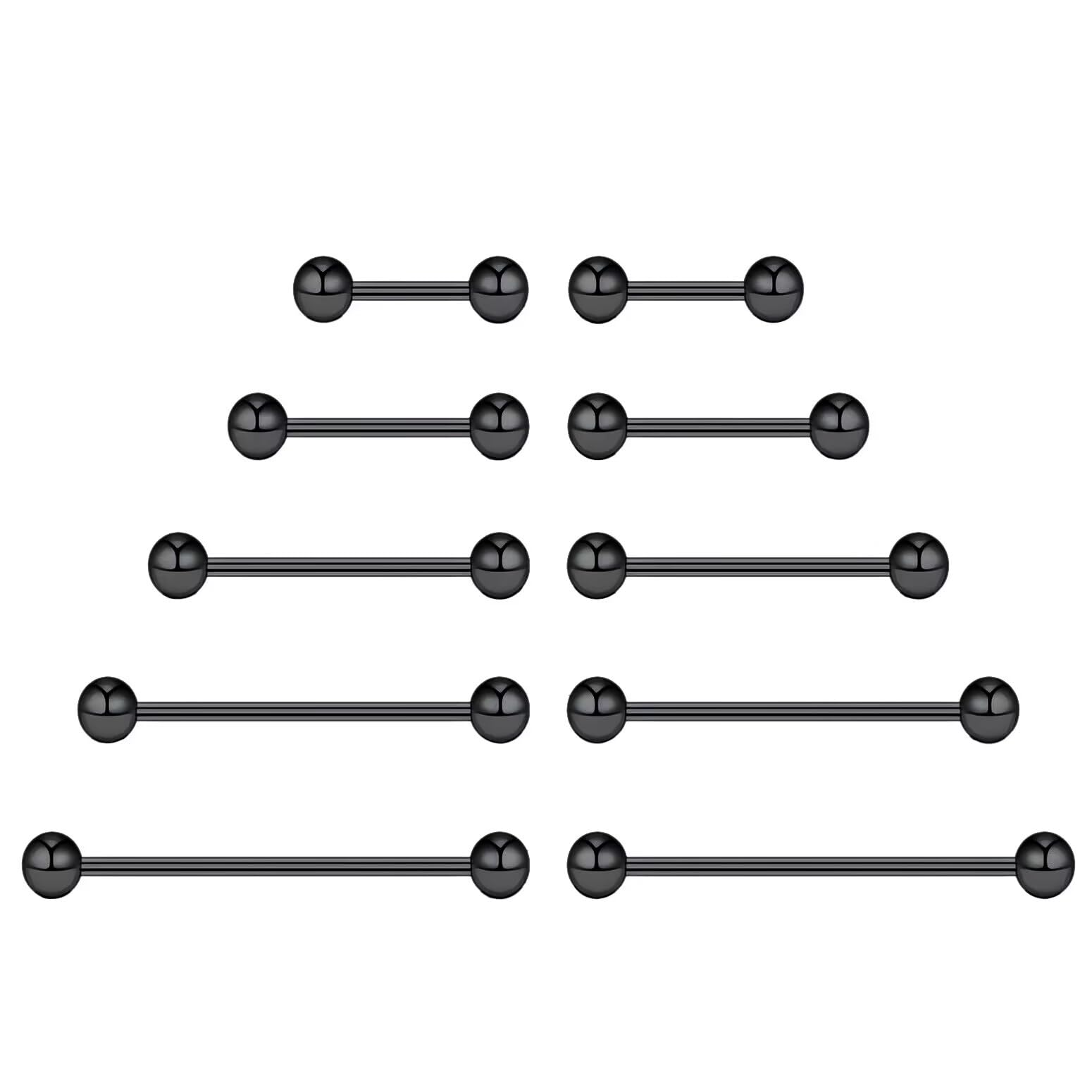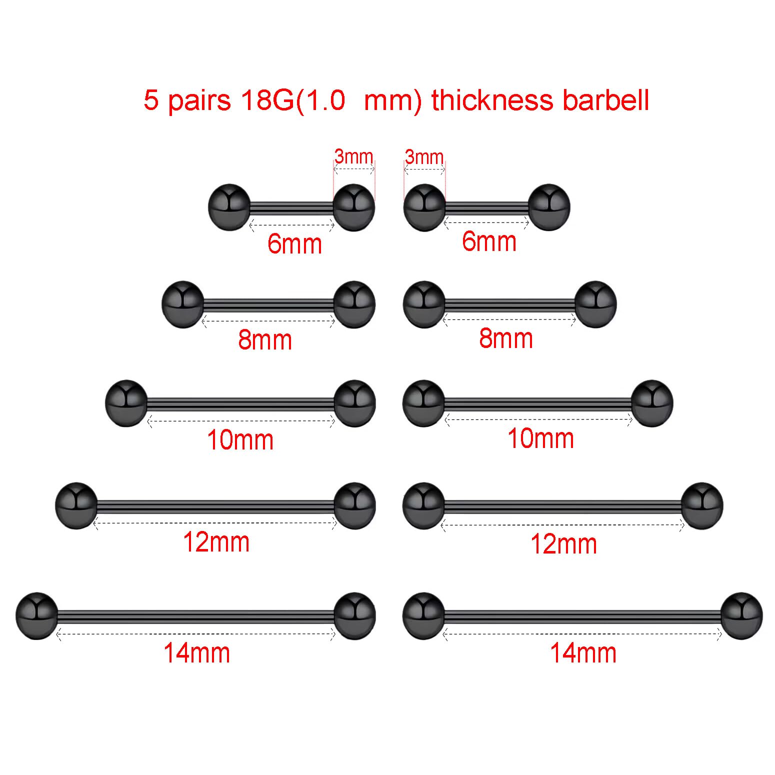 【DIMENSION】: 18G(1.0mm) bar thickness,Multiple bar length: 6mm,8mm,10mm,12mm and 14mm,5 different length. Beads: Φ3mm.Each size one pair.Each package contain 5 pairs.